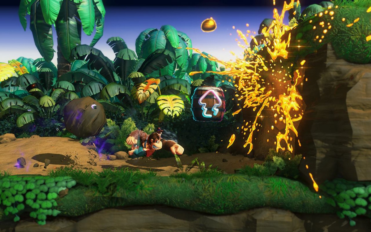 Les animations renforcent cette impression de maîtrise. Donkey Kong, ses transformations et les ennemis bougent avec cohérence. Le terrain réagit à chaque action, les effets visuels ne surchargent jamais l’écran.