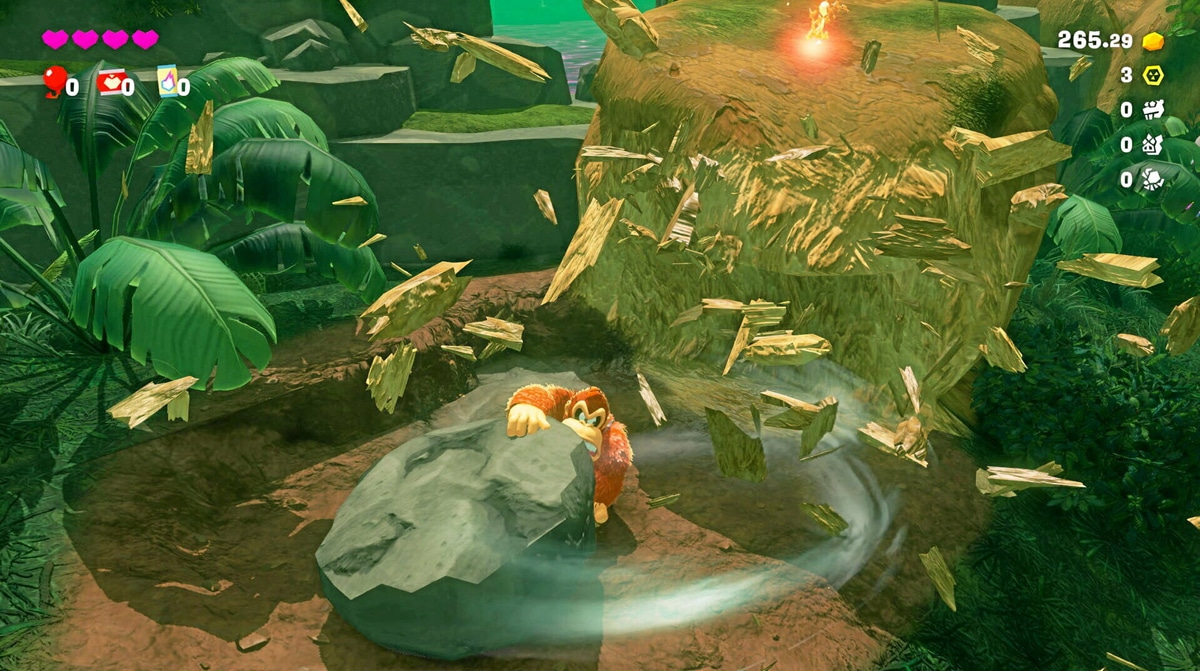 Derrière son apparente linéarité, Bananza cache une construction plus ouverte. Les niveaux s’étendent verticalement et horizontalement, avec des blocs à casser, des passages alternatifs, des chemins secrets et des objets rares. La structure est modulaire : on creuse pour progresser, mais aussi pour dénicher des trésors ou ouvrir de nouveaux segments.