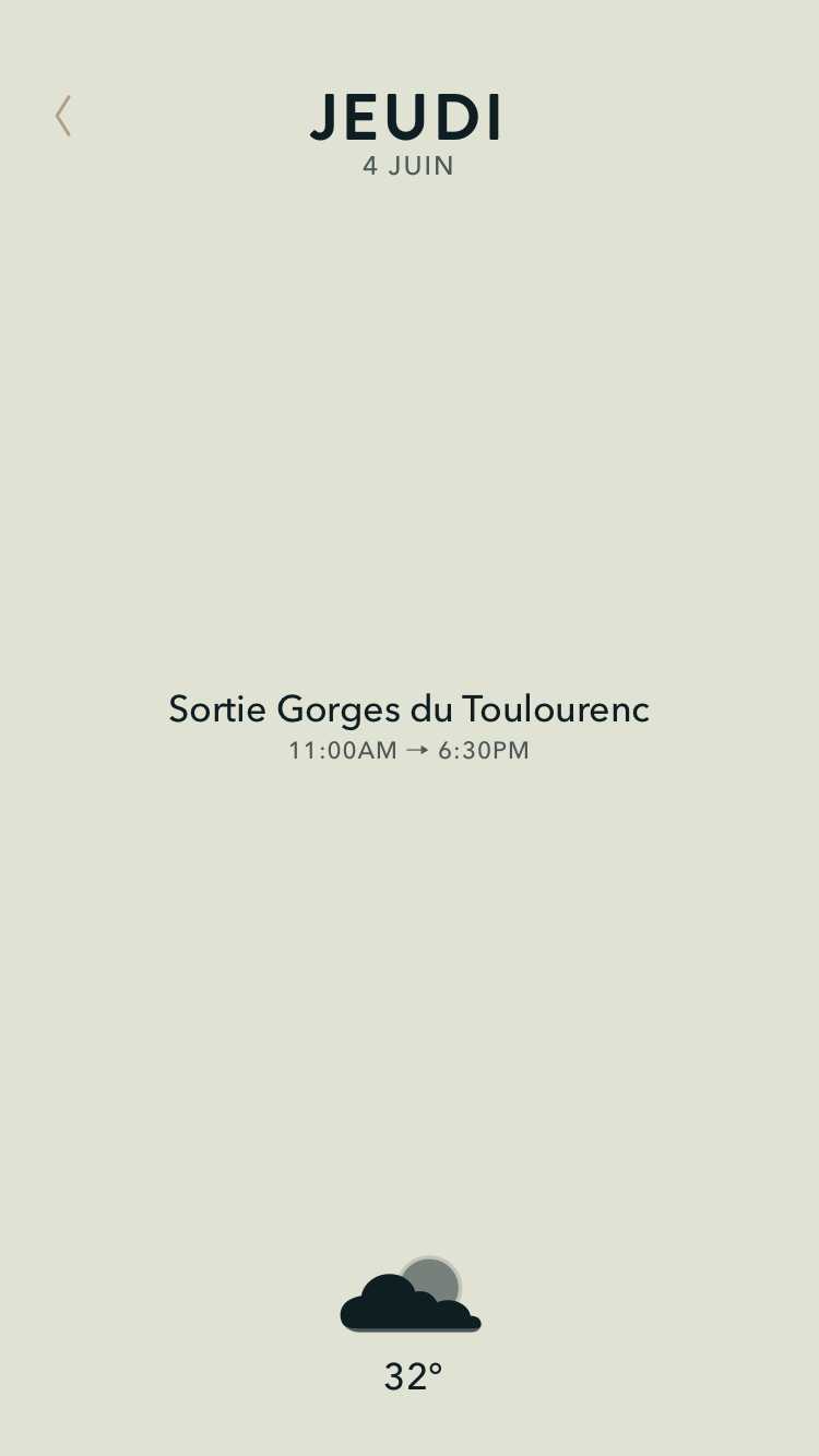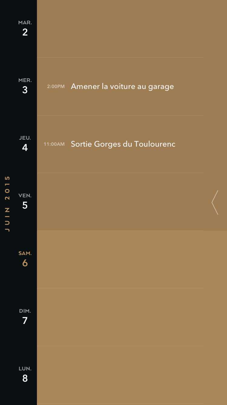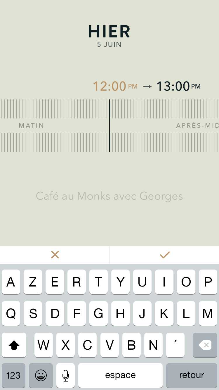 TimePage est très simple à utiliser, une fois la configuration terminée et vos nombreux calendriers ajoutés, les événements de la journée se présenteront en liste, tout simplement. Chaque jour, vous aurez une note sur cette date, puisque chaque jour, l’Homme crée son lendemain. Un événement à ajouter à votre journée ? Il suffit simplement de tirer vers le bas. Ensuite, il suffit de choisir l’horaire de ce rendez-vous, à définir via les heures inscrites en haut. Enfin il faut noter le titre de ce rendez-vous pour que vous soyez prévenu en temps et en heure.