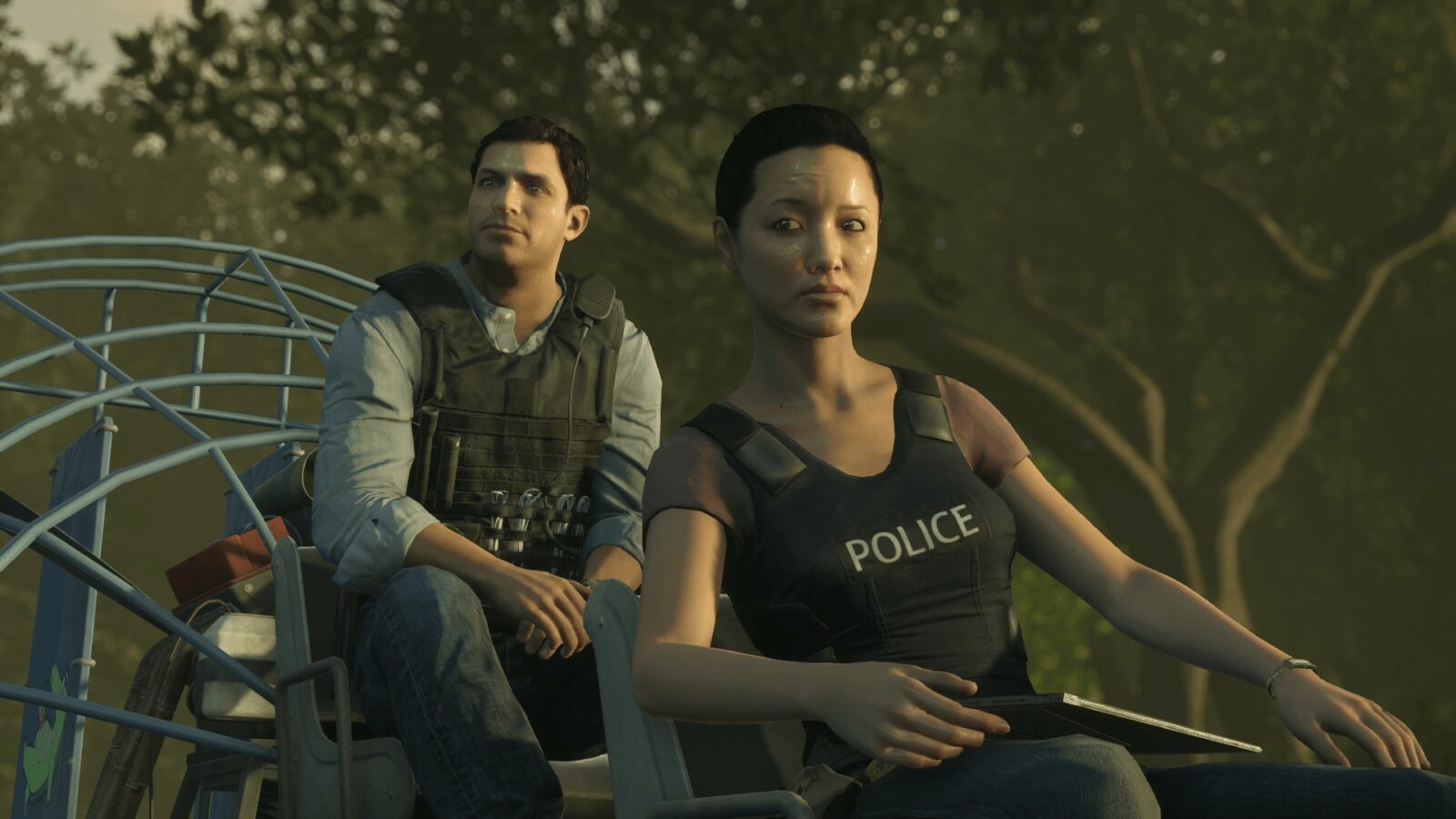 Durant les premières minutes du mode solo, nous sommes plongés dans une véritable histoire qui tient la route de A à Z ! Durant ces 10 heures de jeu, nous nous mettons à la place de Nick Mendoza, un inspecteur de police avec un passé effroyable. Chaque chapitre met en action notre personnage dans des climats et des situations différentes, que ce soit dans les marécages face à un crocodile ou des ghettos pour contrer le marché de la drogue. Ce qui donne un style de série télévisée à ce tout nouveau Battlefield, c’est ce « précédemment dans Battlefield Hardine » à chaque nouveau chapitre. Nick est un policier qui tient à suivre les règles et ne veut sûrement pas contredire l’éthique policière. Pas de mesquinerie ou d’alliance, il se doit d’éviter tout cela. Ainsi, 10 chapitres vous sont proposés, vous serez propulsé dans les cartes du mode online et grâce à Visceral, vous aurez envie de recommencer l’histoire plusieurs fois !
