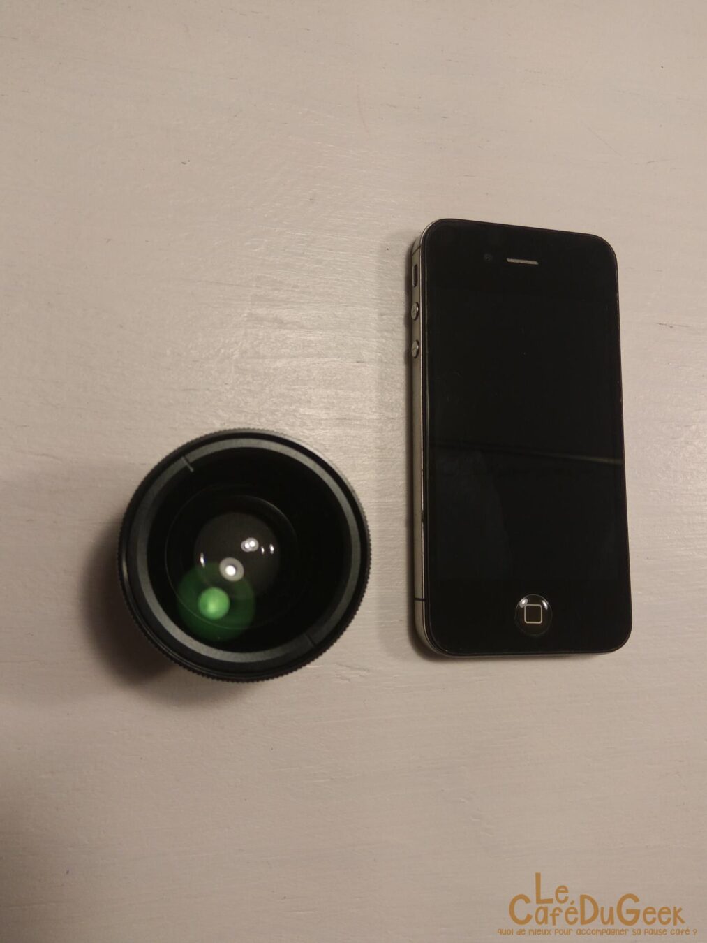 J’ai pu tester ce kit d’objectifs sur mon iPhone 4. Je dois avouer, et vous le remarquez très facilement, que celui-ci est très imposant par rapport au téléphone. Lorsque l’on dispose la pince et les objectifs sur l’iPhone 4, ils ne paraissent pas inaperçus…