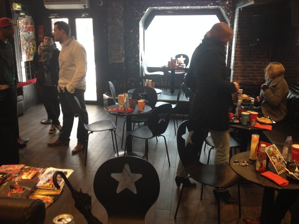 Sébastien explique la création de ce restaurant par ses deux passions : les burgers et les comics et super-héros. Fun fact, une télévision, est présente et diffuse différentes bandes annonces en lien avec l’univers, ce qui m’a permis de suggérer à celui-ci de se renseigner à pourquoi pas diffuser Toonami, nouvelle chaîne de super-héros.