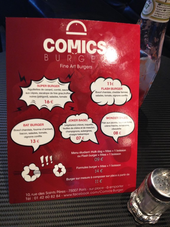 Infos, tarifs, cartes : www.comicsburger.fr et Facebook – 7 rue des Saint-Pères 75007 PARIS