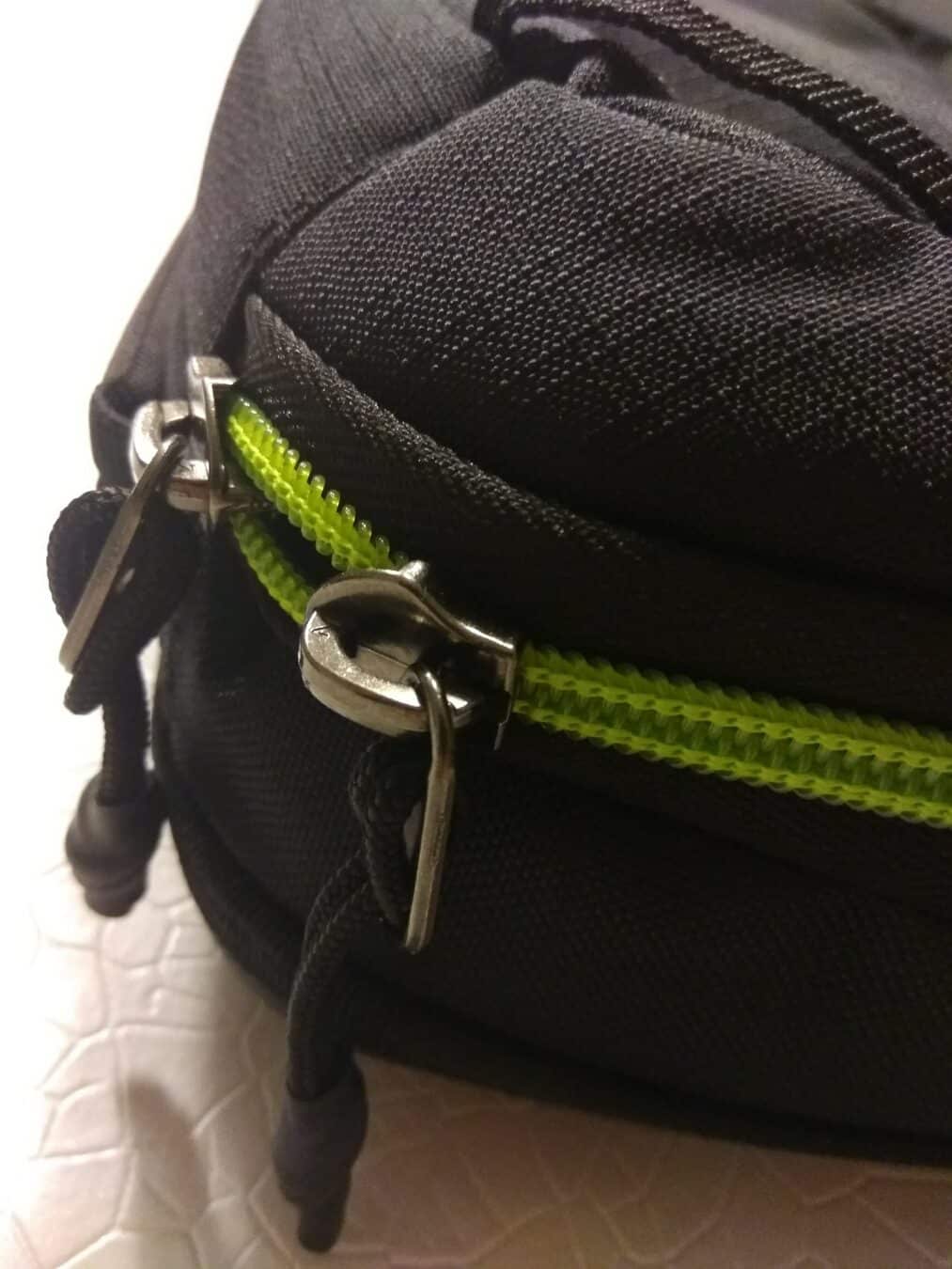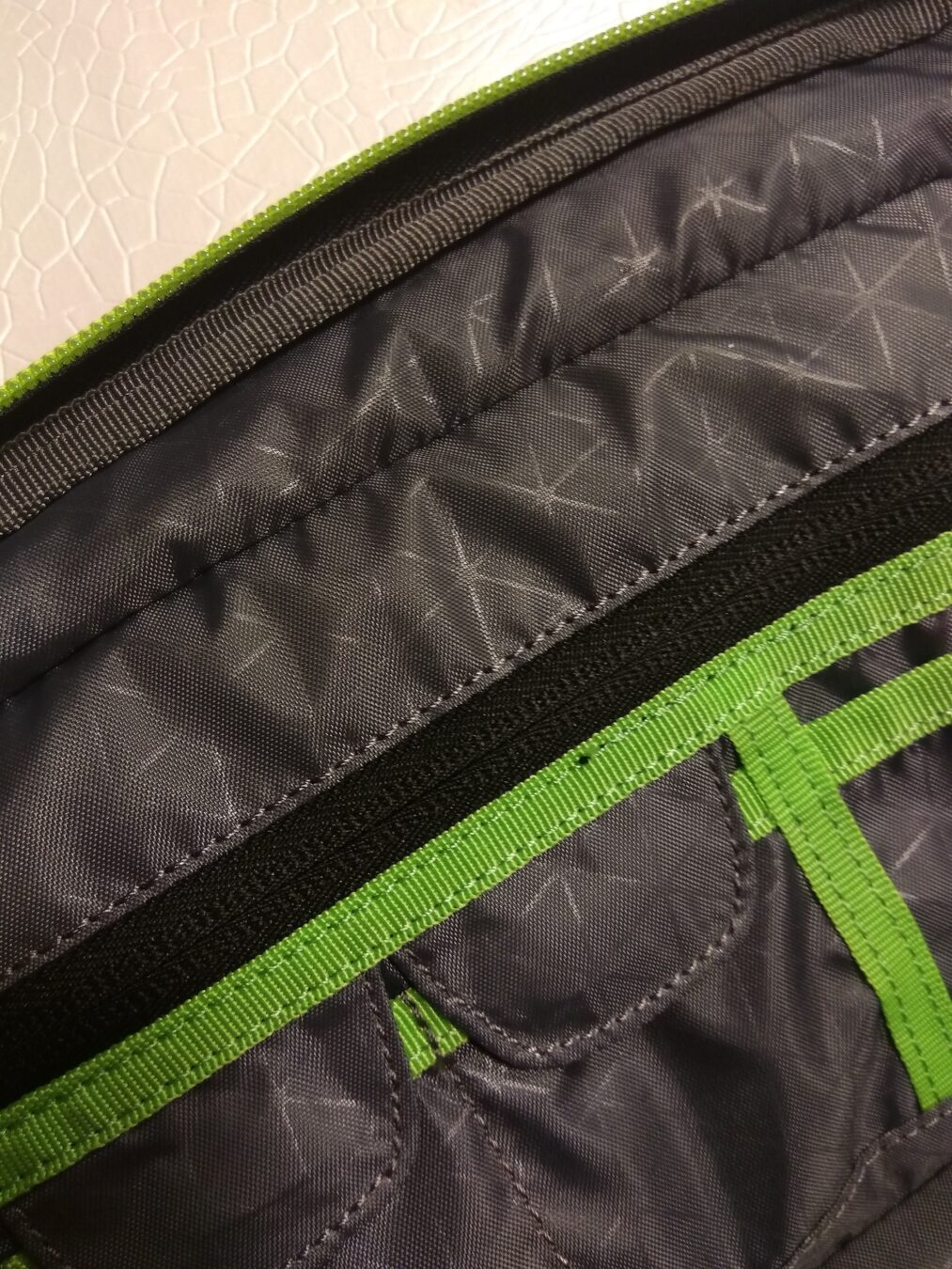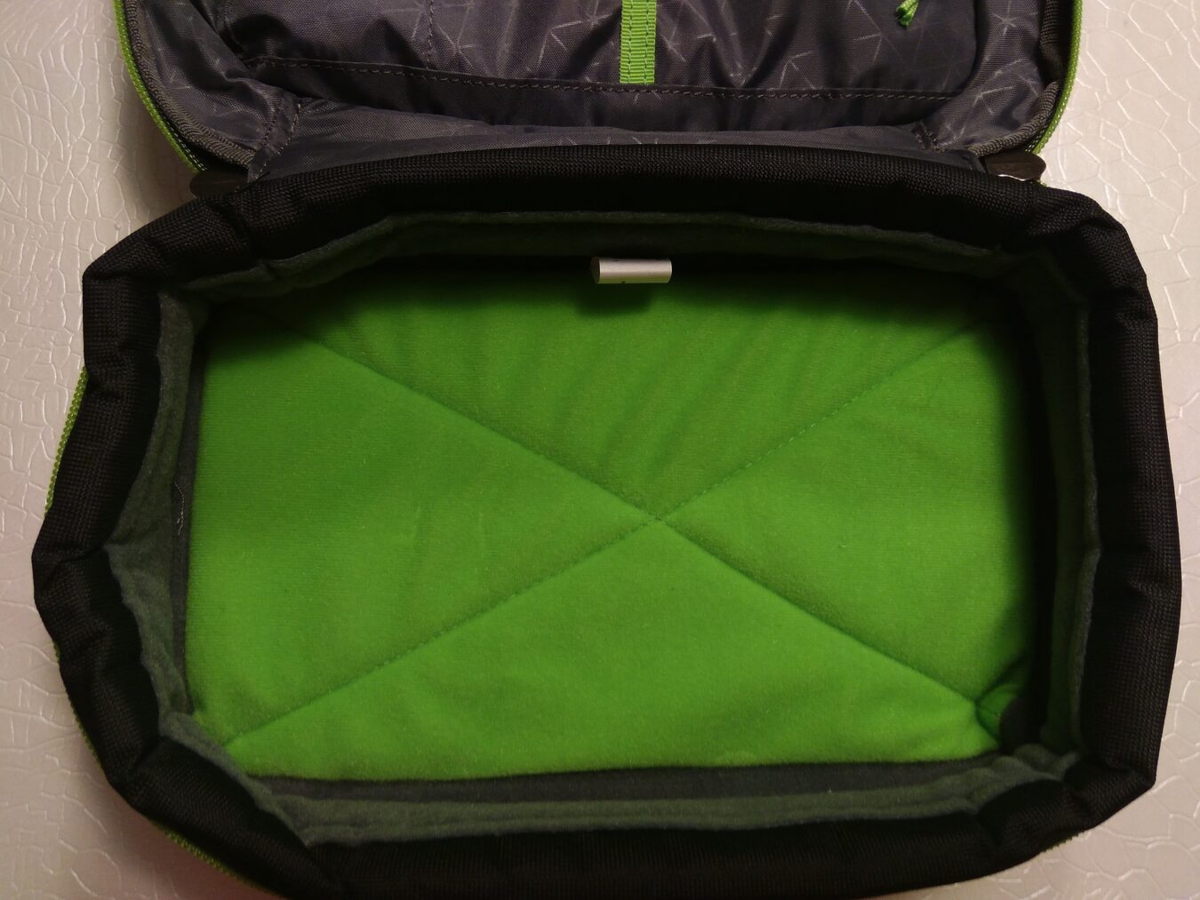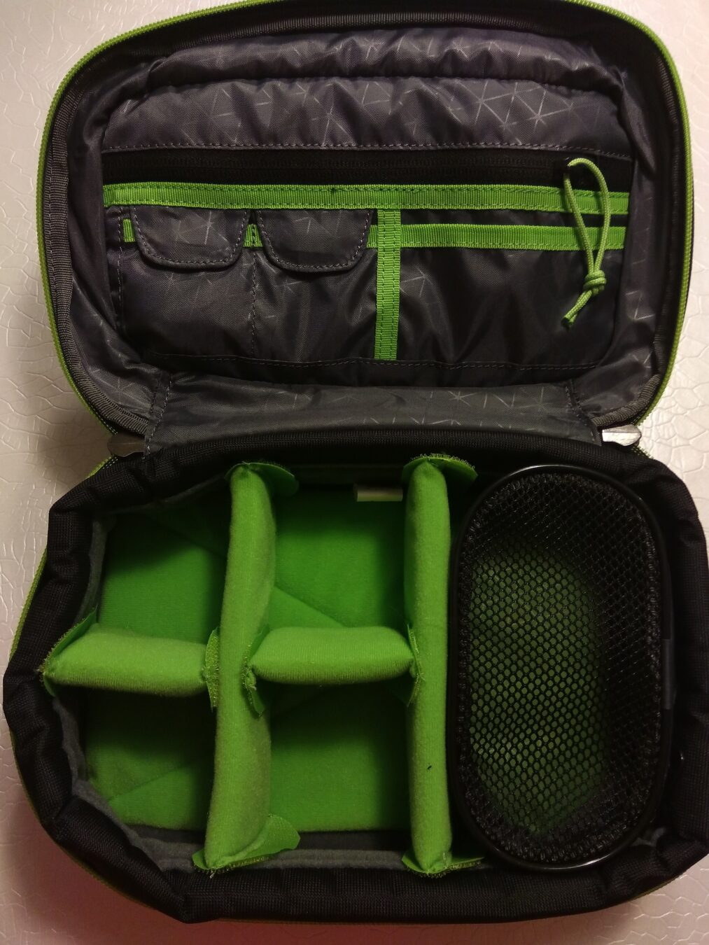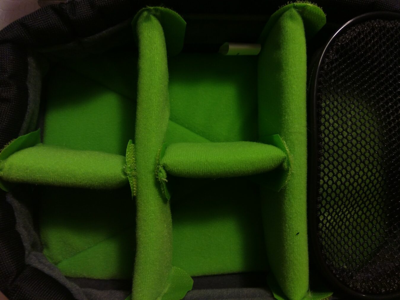 Un des points positifs de cette housse est que vous ne serez pas en manque de place. En effet, la housse de protection est donc composée de parties modulables, afin de créer les compartiments que l’on souhaite, ou bien ne rien y mettre comme le montre une de ces photos. La housse dispose également de séparations scratchées, que vous pouvez moduler à votre guise. La fermeture éclair est résistante, de couleur verte tout comme l’intérieur de la housse et est faite d’une double fermeture éclair qui vous permettra d’y mettre un cadenas. Dès lors, seront à l’abris votre caméra (ou ce que vous voulez) mais aussi les accessoires qui l’accompagnent.