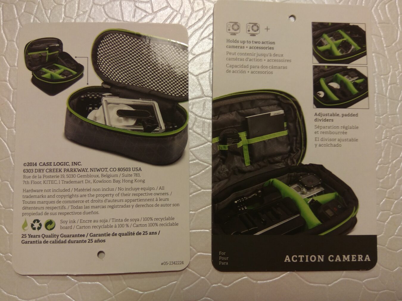 Reçue dans un petit colis, et soigneusement emballée, cette housse de protection pour caméra « embarquée » était accompagnée d’une petite notice présentant rapidement le produit, et ses caractéristiques. La housse est compatible pour deux caméras sportives (de type « GoPro ») ainsi que pour leurs accessoires. Pour ma part, j’ai seulement mis ma caméra sportive et ses accessoires dans la housse de protection.