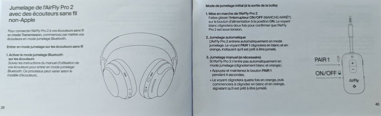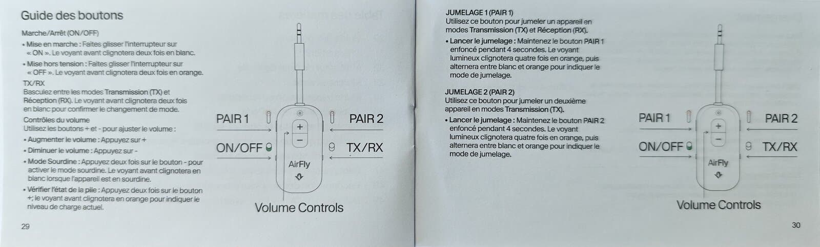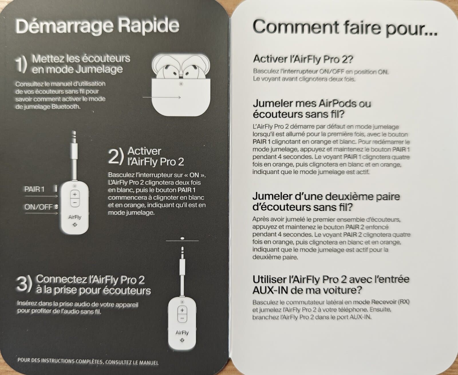 Il sait gérer deux casques simultanément pour partager un film ou une playlist. La nouvelle version améliore la latence et les contrôles, intègre une puce audio plus récente, et propose une autonomie annoncée au-delà de 25 heures avec recharge USB-C. Les dimensions restent compactes, le poids plume, et l’appairage se fait via boutons dédiés, ce qui simplifie les voyages et les correspondances. En pratique, on alterne très vite entre les modes, sans redémarrer l’appareil, et on conserve un son stable dans l’avion ou au salon. C’est un petit accessoire presque magique qui vous permettra de voyager en avion tout en regardant les films proposés sur votre propre casque ou écouteurs Bluetooth. Et pour vos trajet en véhicule du quotidien il s’évère très pratique pour les véhicules non équipés.