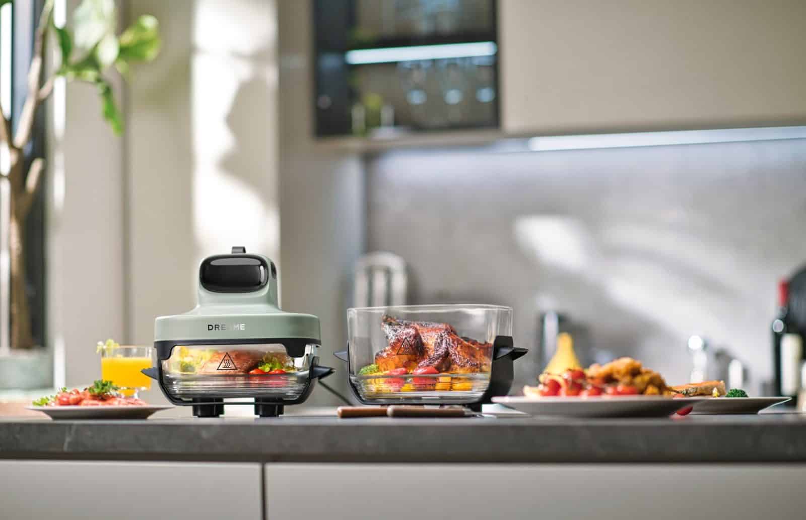La cuve transparente permet de suivre la cuisson en temps réel. L’indicateur thermique change de couleur pour éviter les brûlures. La technologie Air chaud 3D assure une cuisson homogène, tandis que la vapeur intégrée préserve le moelleux. Les bols en verre passent au lave-vaisselle et le revêtement extérieur mat se nettoie facilement. L’appareil vise une utilisation polyvalente au quotidien.