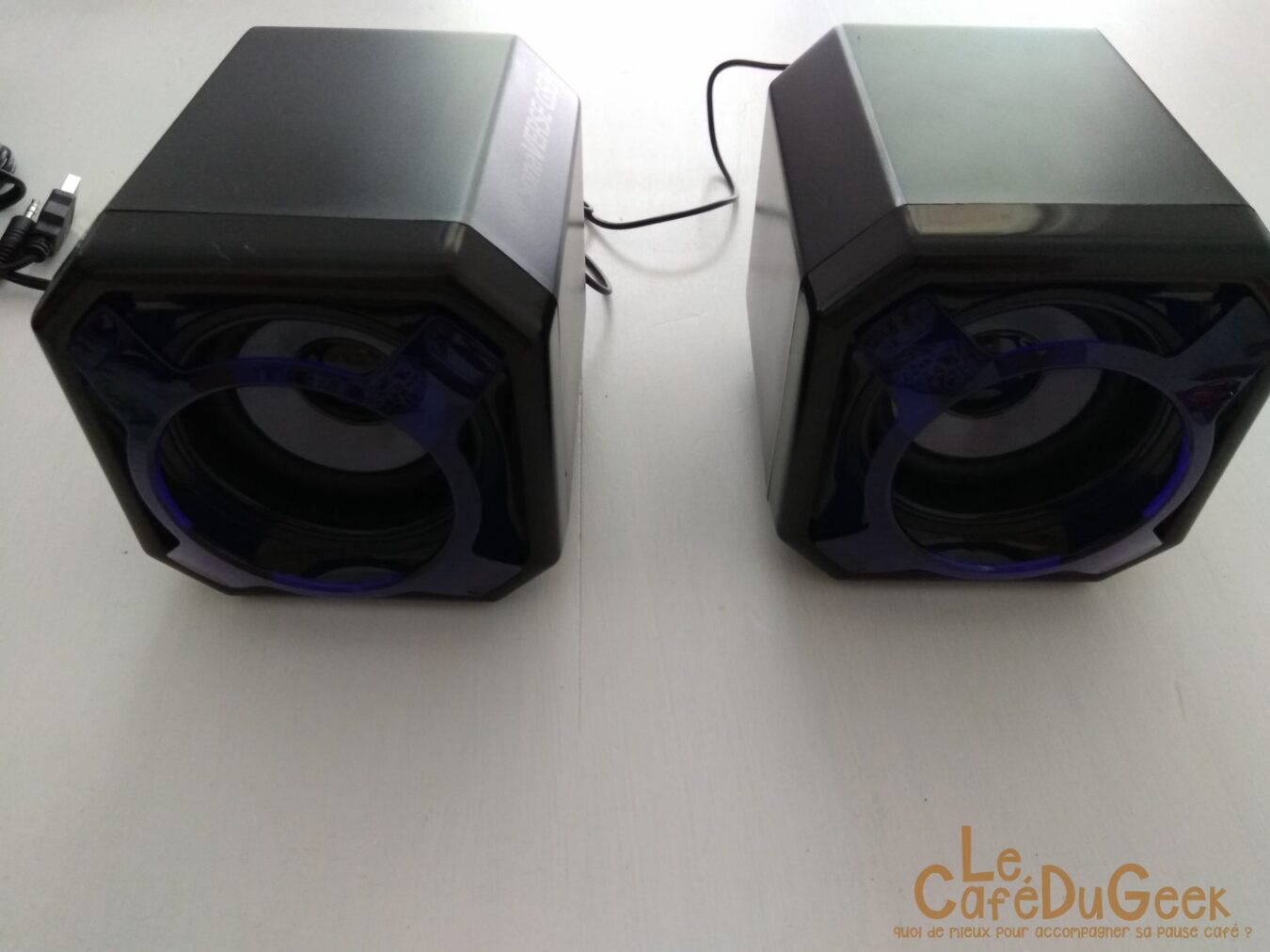 - Les enceintes sont équipées câble USB et d’une prise JACK 3.5MM.