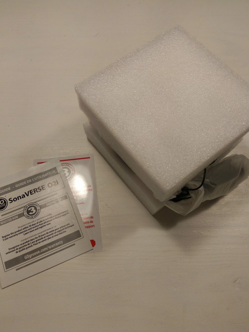 A l’intĂ©rieur, on retrouve bien Ă©videmment les fameuses notices d’utilisation, mais Ă©galement les enceintes bien protĂ©gĂ©es par de la mousse. Comme d’habitude, vous retrouverez un papier concernant leur garantie produit.