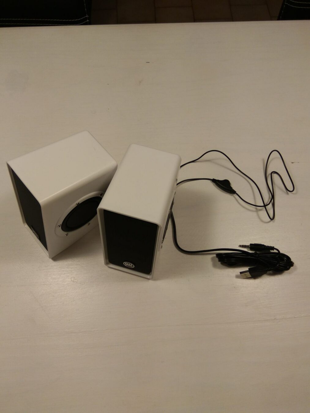 Au niveau des enceintes, le design est d’une belle simplicitĂ© : moderne et discret, comme il le faut sur un bureau. Leur coffrage est en blanc « glossy » avec une finition mĂ©tal. Lorsque l’on branche les enceintes (USB), un nĂ©on bleu (LED) s’allume autour des enceintes et donne un cĂ´tĂ© beaucoup plus design et « futuriste« .