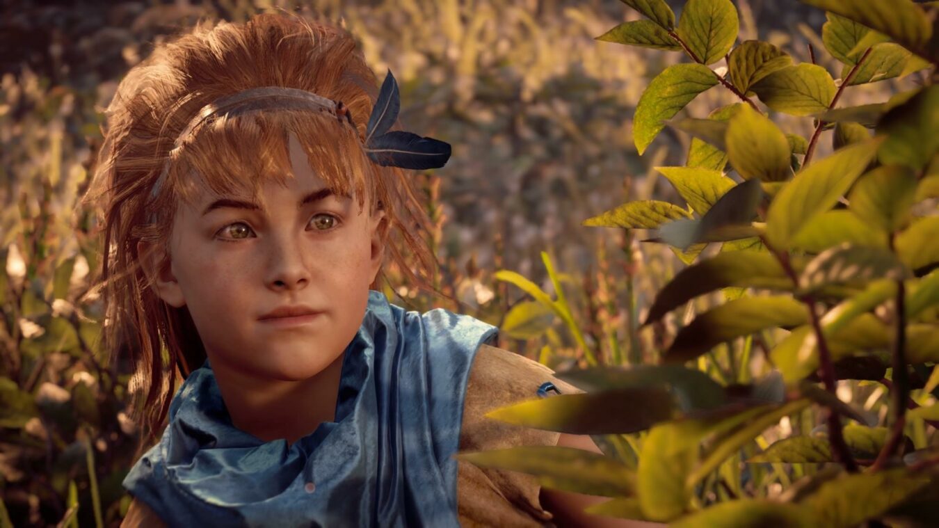 Aloy, jeune bébé retrouver par une tribu appelée Nora, mais ces derniers étant très méfiant ils n’acceptent pas l’enfant. Elle est élevée par Rost qui la considéra comme sa propre fille. Ce dernier l’élève et lui apprendra les techniques de survie et de chasse. Dans ce monde post apocalyptique, la planète est contrôlée par des animaux robots. L’humanité vit recluse dans différentes communautés, elle n’est plus l’espèce dominante et a dû apprendre à survivre. Le jeu commence réellement quand Aloy devient adulte et doit passer une initiation appelée l’éclosion. Si elle réussit cette épreuve elle ne sera plus une paria et pourra intégrer la tribu des Nora pour en savoir plus sur son passé inexpliqué. Mais durant cette épreuve un tragique événement va arriver. Une attaque d’une autre tribu va faire un très grand nombre de morts chez les Nora. Elle décide donc de partir à la chasse des tueurs et c’est là que tout commence réellement. L’histoire du jeu est captivante, que ce soit la quête principale ou les missions annexes, l’ensemble est cohérent. La possibilité de choisir les réponses lors de phases de dialogues ne changent pas l’histoire mais permet d’approfondir la connaissance des autres personnages.