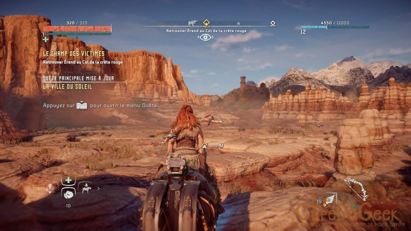 – Jouabilité : Elle est très bonne, mais la caméra a parfois de curieuses réactions. Mais Aloy réagit au doigt et à l’œil, c’est d’ailleurs primordial lors de certains combats plus qu’ardus.