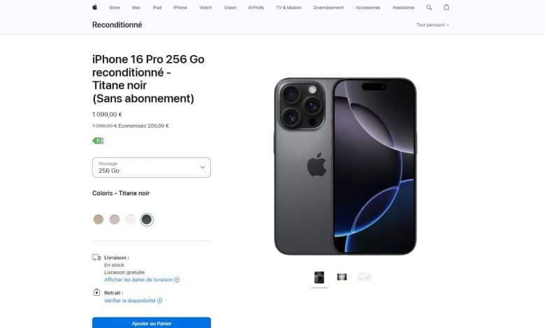 Les iPhone 16 et 16 Pro reconditionnés affichent des tarifs inférieurs à ceux des modèles neufs. Par exemple, un iPhone 16 Pro 256 Go en titane noir est proposé à 1 099 €, contre 1 299 € lors de sa sortie. Cette réduction de 200 € rend l’achat plus attractif pour ceux qui souhaitent accéder aux dernières innovations sans payer le prix fort.
