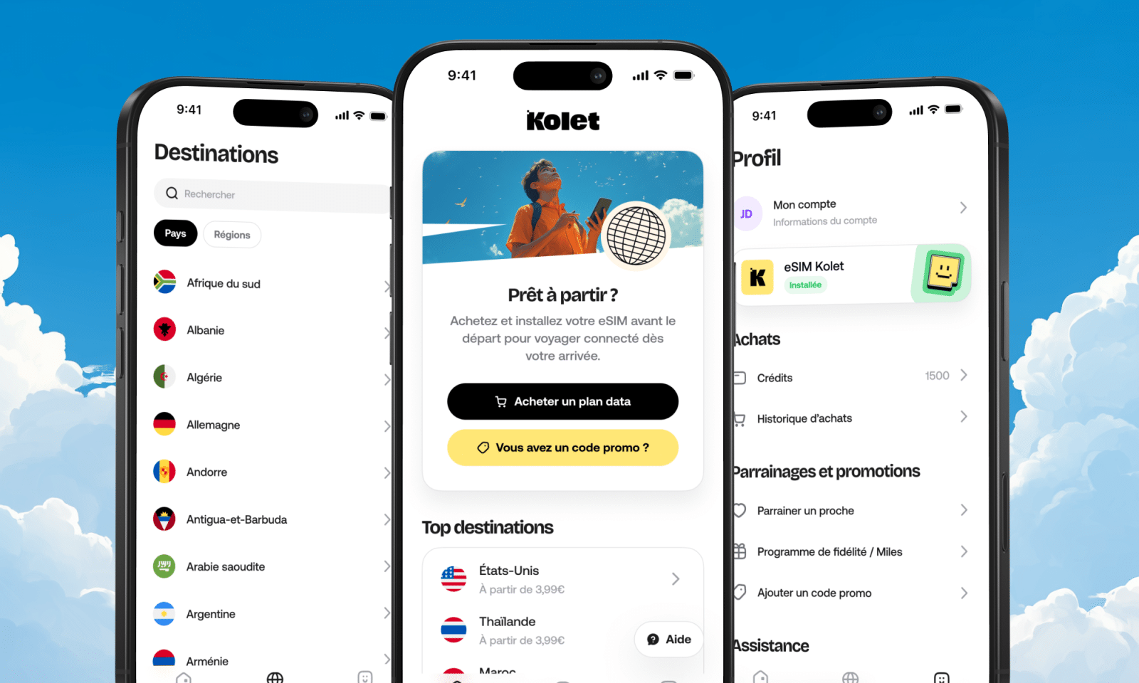 En installant la eSIM Kolet en 2 minutes seulement, le voyageur accède à la connectivité dans plus de 190 pays. Il profite désormais d’une voix internationale sans frontières ni arnaques tarifaires.