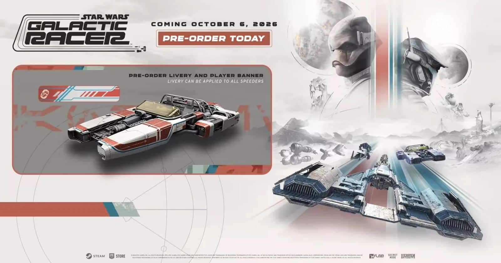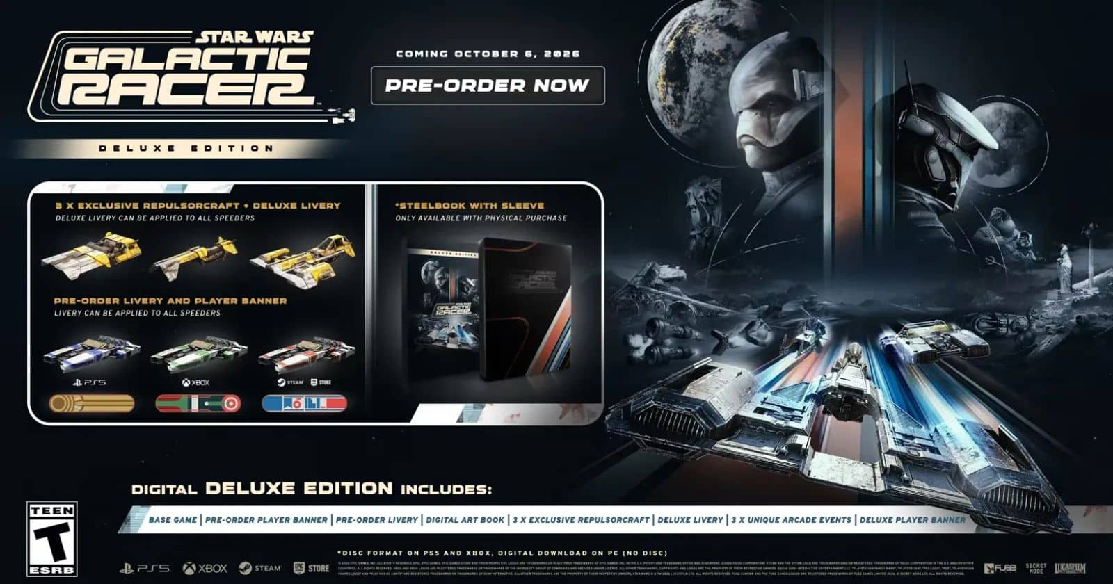 Tout le monde le sait : officiellement, Star Wars: Galactic Racer reste attendu pour 2026. Mais c’estsans compter sur l’acharnement des fans qui trépignent d’impatience devant l’un des jeux de course les plus attendus de l’année ! Grâce (ou à cause) d’un visuel de précommande, ils ont alors pu dénicher la date de sortie précise de du jeu. Préparez vos pods : la course débutera en octobre de cette année.
