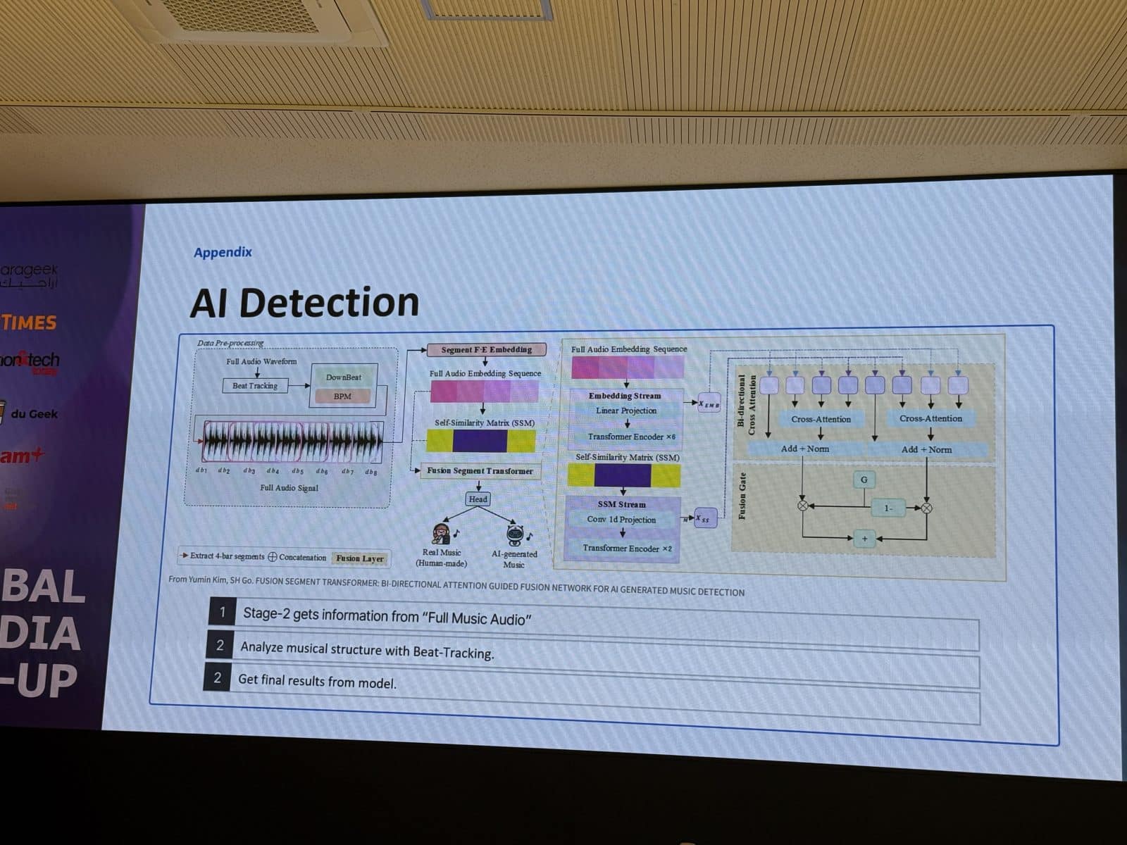D’un point de vue technique, l’outil repose sur le “segment transcription”, une technologie qui transcrit la musique en notes, voix et instruments, avant d’appliquer des modèles auto-supervisés pour en extraire le sens. MIPPIA est aussi capable de détecter les morceaux hybrides, avec des voix humaines sur des instrumentaux générés par IA, et inversement.