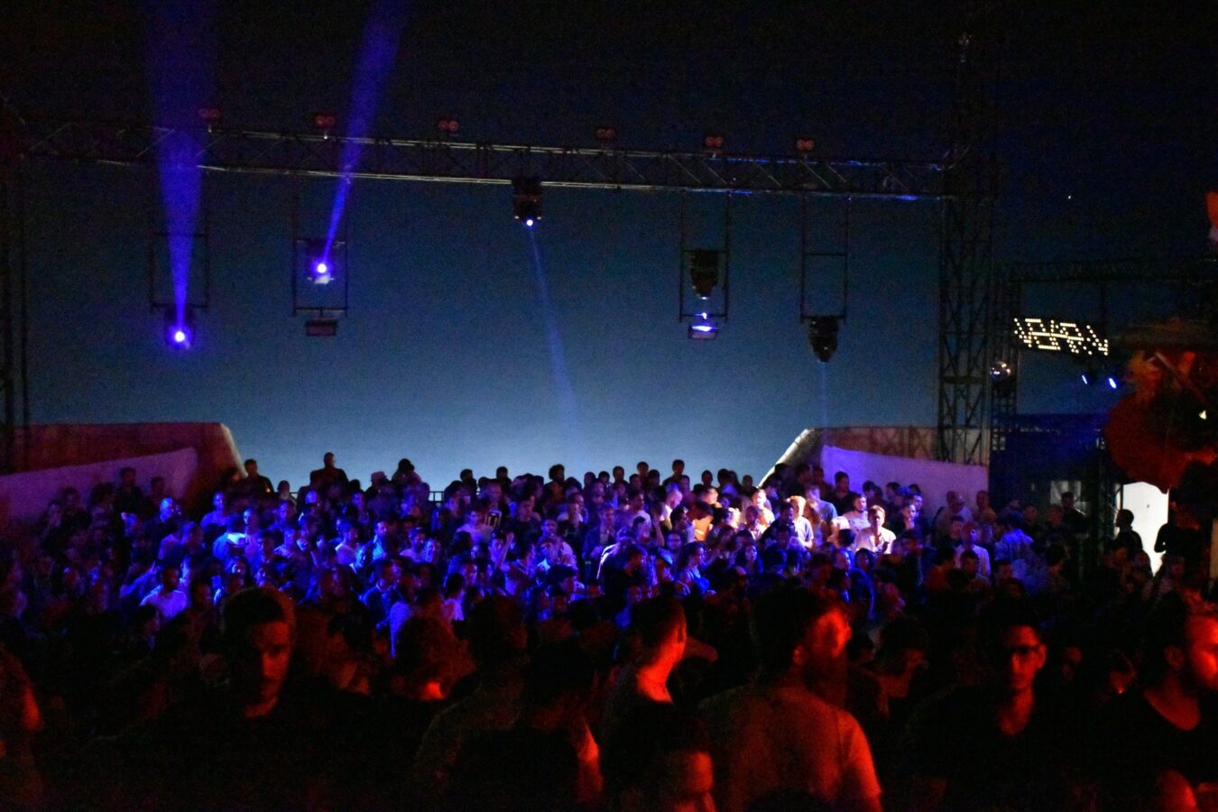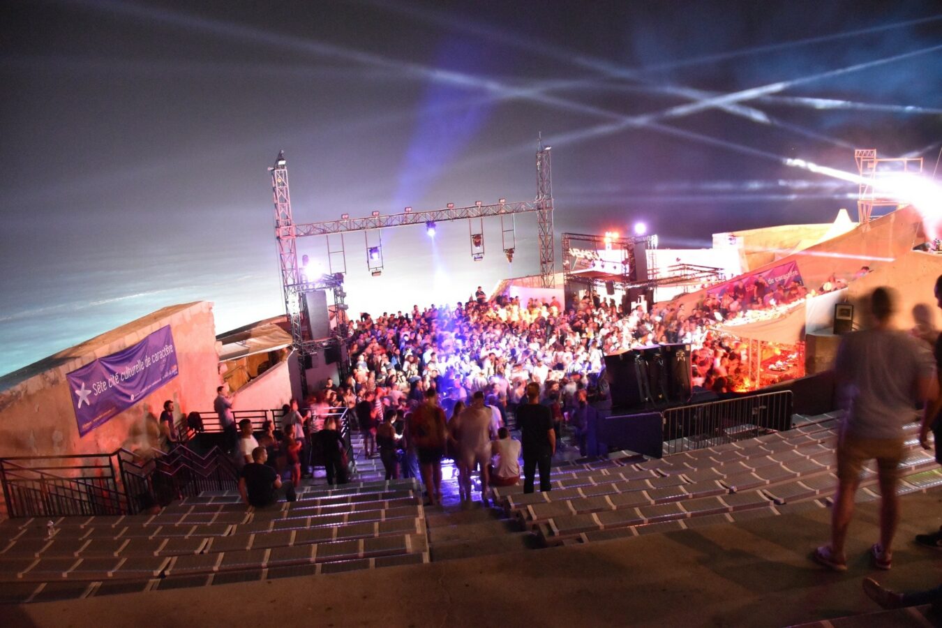 De 19 à 3h du matin, les DJ s’enchaînent, avec une musique assez calme jusqu’à 21h où les basses commencent à se faire entendre et où la musique commence à résonner dans l’enceinte du Théâtre de la Mer. C’est aussi à ce moment où les têtes d’affiche se rendent devant les platines. Voici à peu près à quoi ressemblait la soirée !