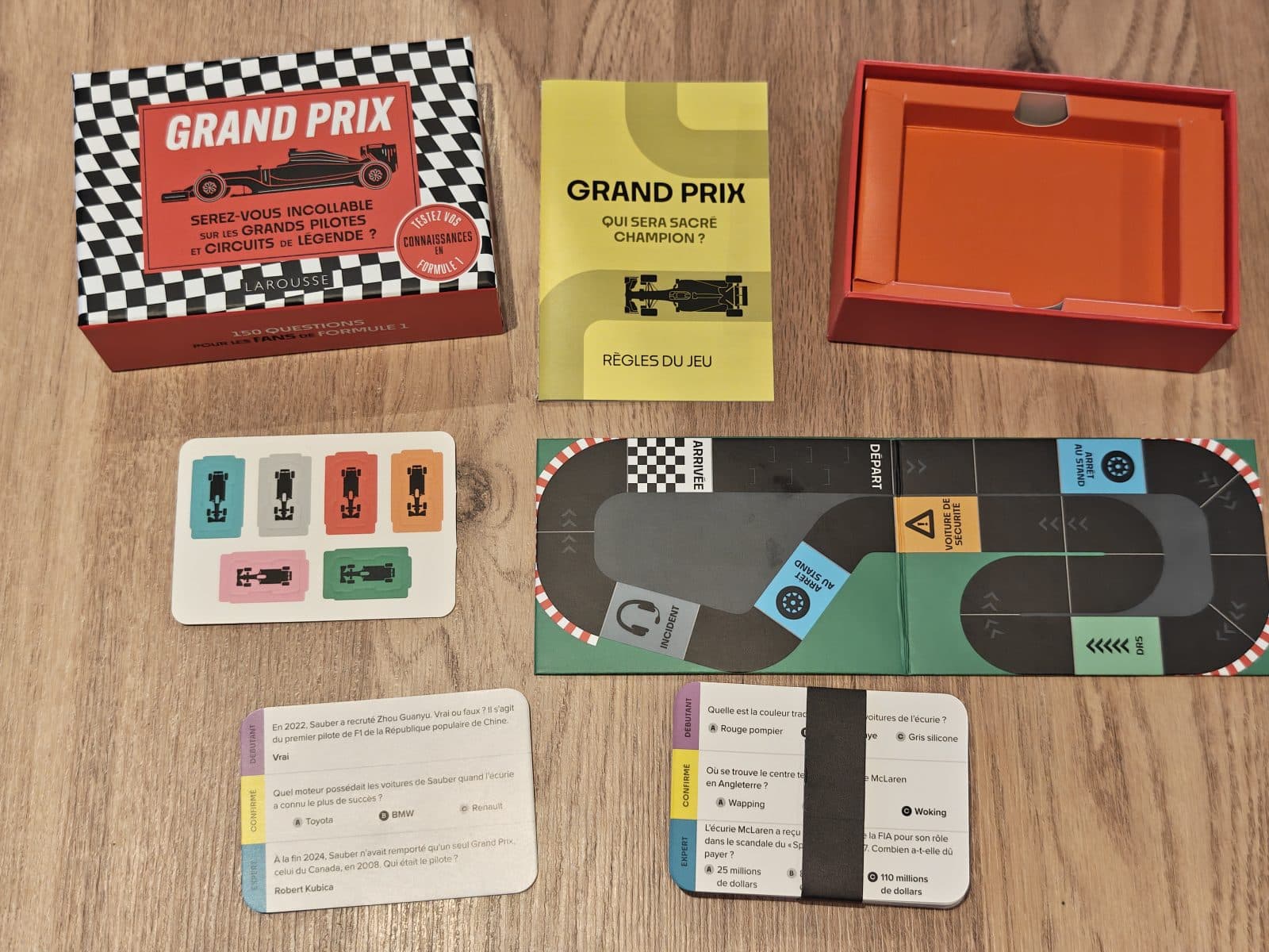 Ce jeu propose une immersion ludique dans l’univers de la Formule 1 à travers une série de questions aussi pointues que passionnantes. Les joueurs sont invités à tester leurs connaissances sur des thèmes variés, comme les débuts de carrière de pilotes emblématiques, leurs surnoms, les virages mythiques des circuits ou encore des anecdotes marquantes de l’histoire du championnat. La boîte contient 50 cartes regroupant 150 questions, ainsi qu’un plateau de jeu, six pions et un livret de règles. Les parties sont rapides, d’une durée comprise entre 10 et 30 minutes, et s’adaptent à tous les niveaux grâce à trois degrés de difficulté, du débutant à l’expert. Conçu pour 2 à 6 joueurs, ce jeu promet des moments conviviaux, accessibles et riches en souvenirs pour les amateurs de F1 comme pour les curieux.