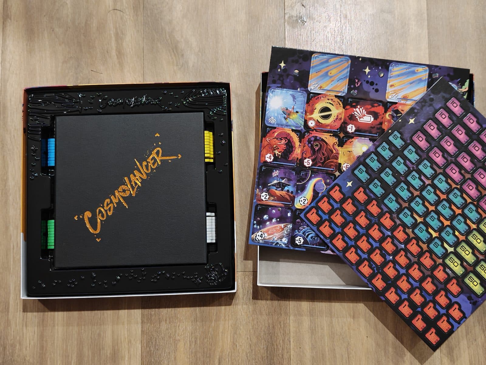 Mais attention : les dangers cosmiques, eux aussi, se glissent parmi les tuiles et peuvent tout faire basculer ! Jeu de stratégie et d’anticipation, Cosmolancer mêle placement, opportunisme et ambiance loufoque pour une course effrénée à l’image parfaite.