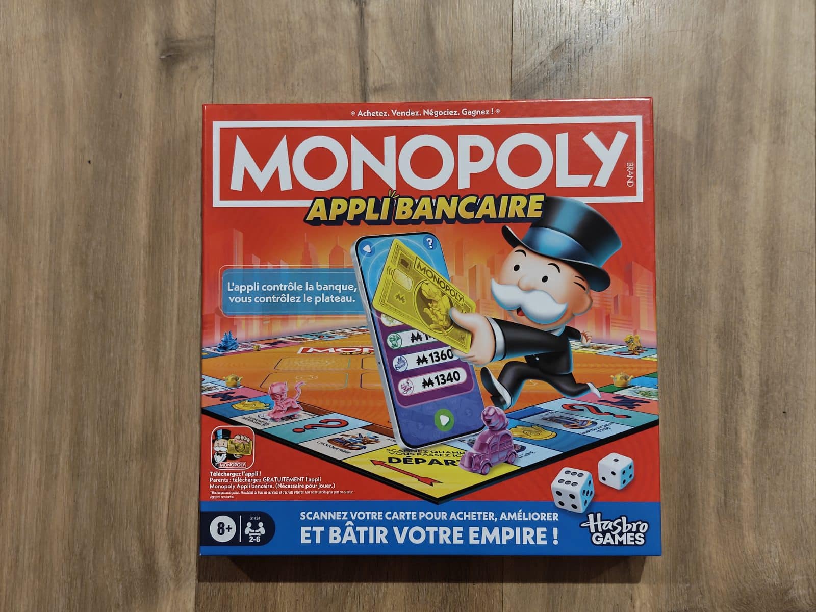 Le jeu Monopoly Appli Bancaire est le premier Monopoly avec une application facilitant la gestion bancaire, incluant des mini jeux et bien plus ! Dans ce jeu de société, les joueurs parcourent le plateau du Monopoly classique tandis que l’appli joue le rôle de la banque et du banquier. Pas d’espèce, et pas de banquier !
