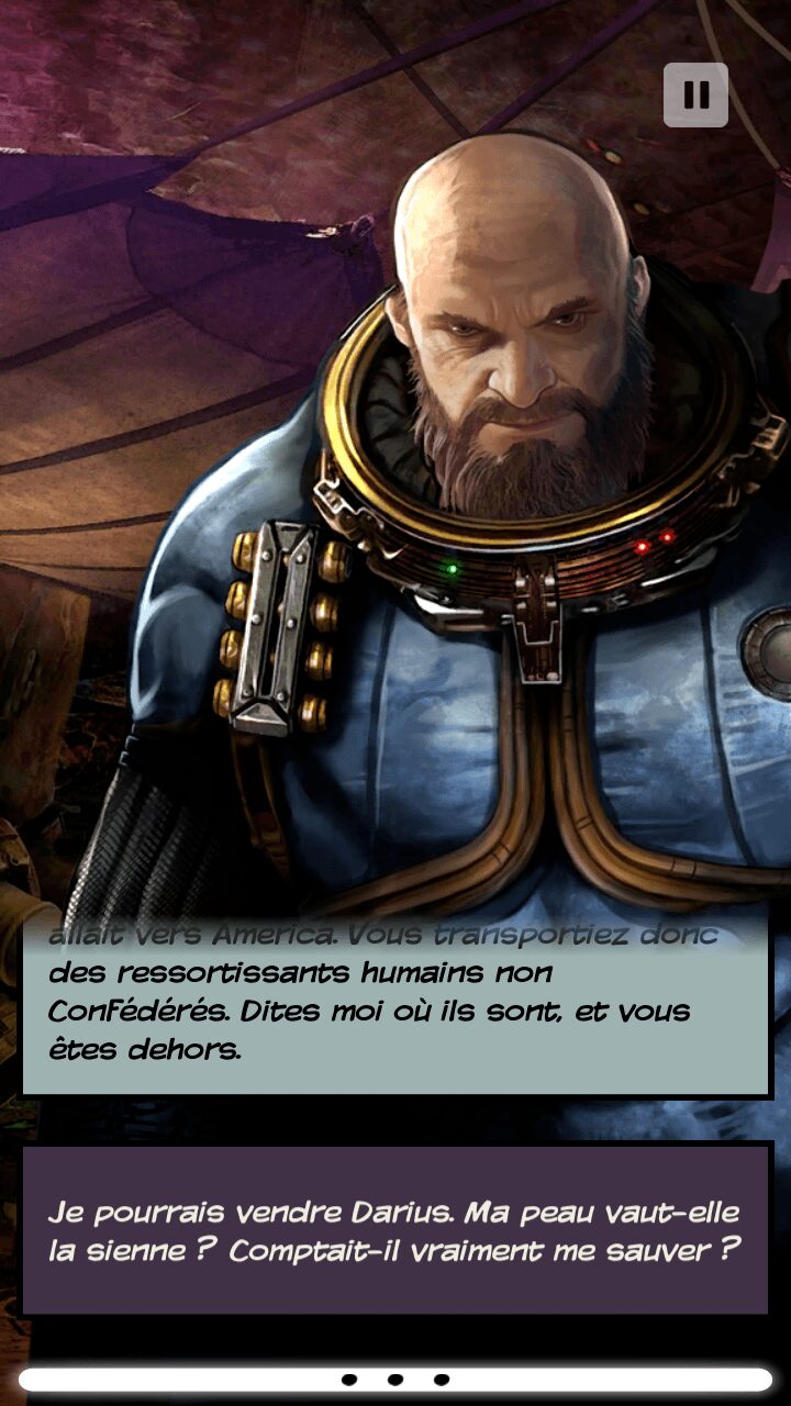De plus, un autre défaut, mais qui est peut-être propre à mon smartphone Wiko. Lors de parties, le son était quasi inaudible, donc peu présent. Ce qui diminue un peu l’immersion, mais montre combien le scénario est bon, car même sans cela, le jeu me captivait.