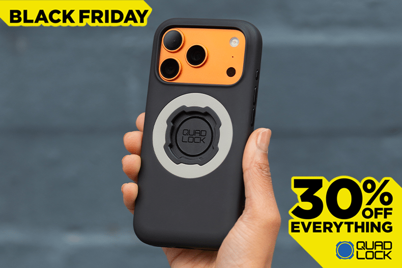 Cette campagne accompagne évidemment la plus grosse promotion de Quad Lock : 30 % de réduction sur tout le site, une opportunité rare pour s’équiper en supports, coques et accessoires premium — que l’on soit motard, cycliste, automobiliste, randonneur ou adepte du tout-terrain.