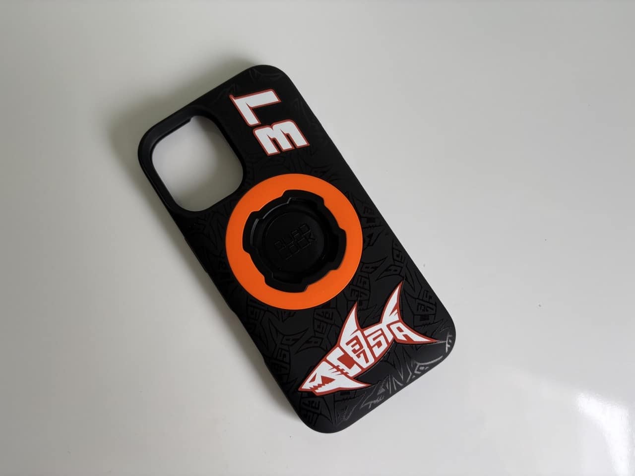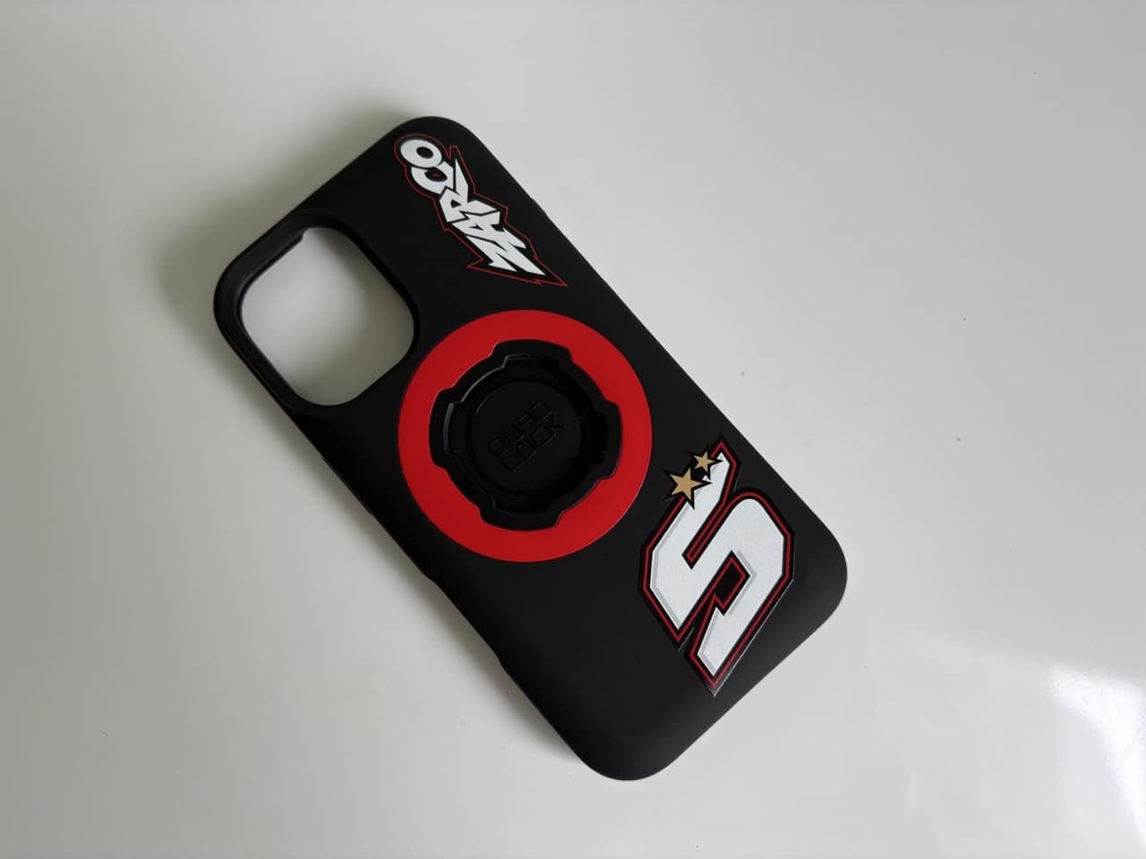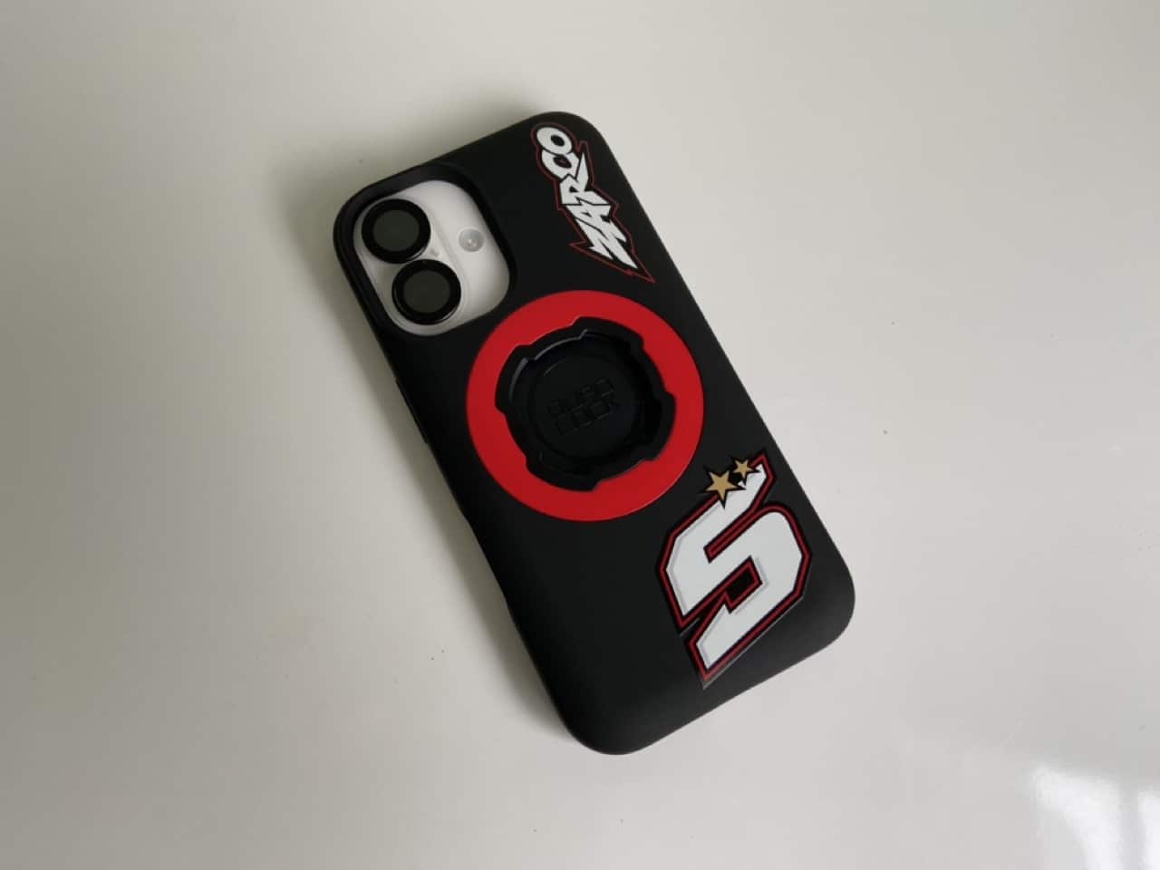 Les visuels sont réussis, sobres et élégants. Quad Lock évite le piège du produit trop chargé ou trop “merchandising”. Le design reste lisible, moderne et parfaitement intégré à la coque. Résultat : on affiche clairement sa passion pour le MotoGP. Cependant, on ne transforme pas son smartphone en objet criard. En tant que fans de MotoGP, c’est clairement un petit plaisir supplémentaire, que ce soit sur la moto, au bureau ou dans la vie de tous les jours.