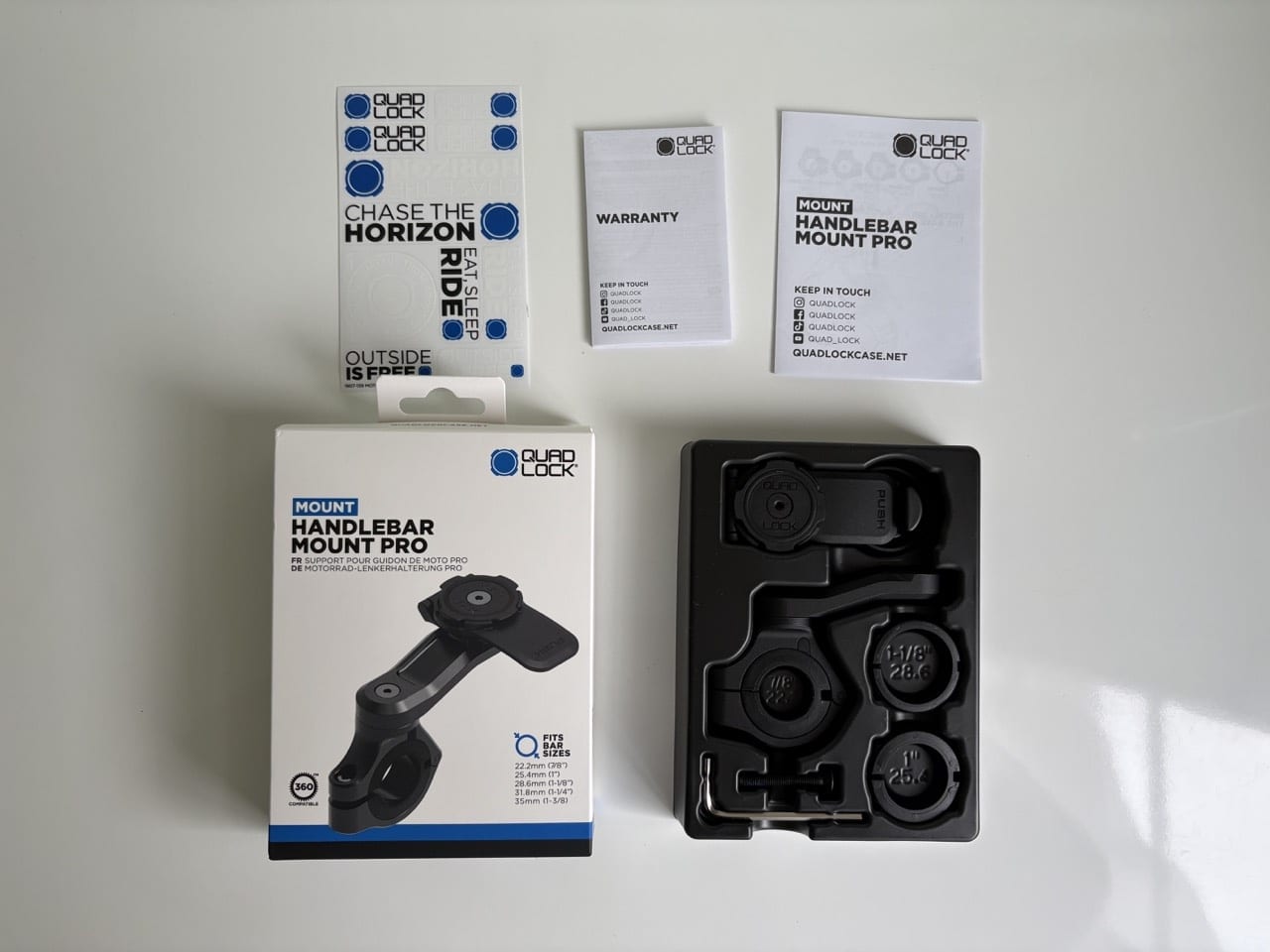 Quad Lock confirme une nouvelle fois son savoir-faire avec ces coques MAG Johann Zarco et Pedro Acosta, associées au support guidon moto Pro. Forts de nos précédents tests très positifs des produits de la marque, nous retrouvons ici une qualité de fabrication irréprochable. L’ergonomie est maîtrisée et la fiabilité inspire confiance.