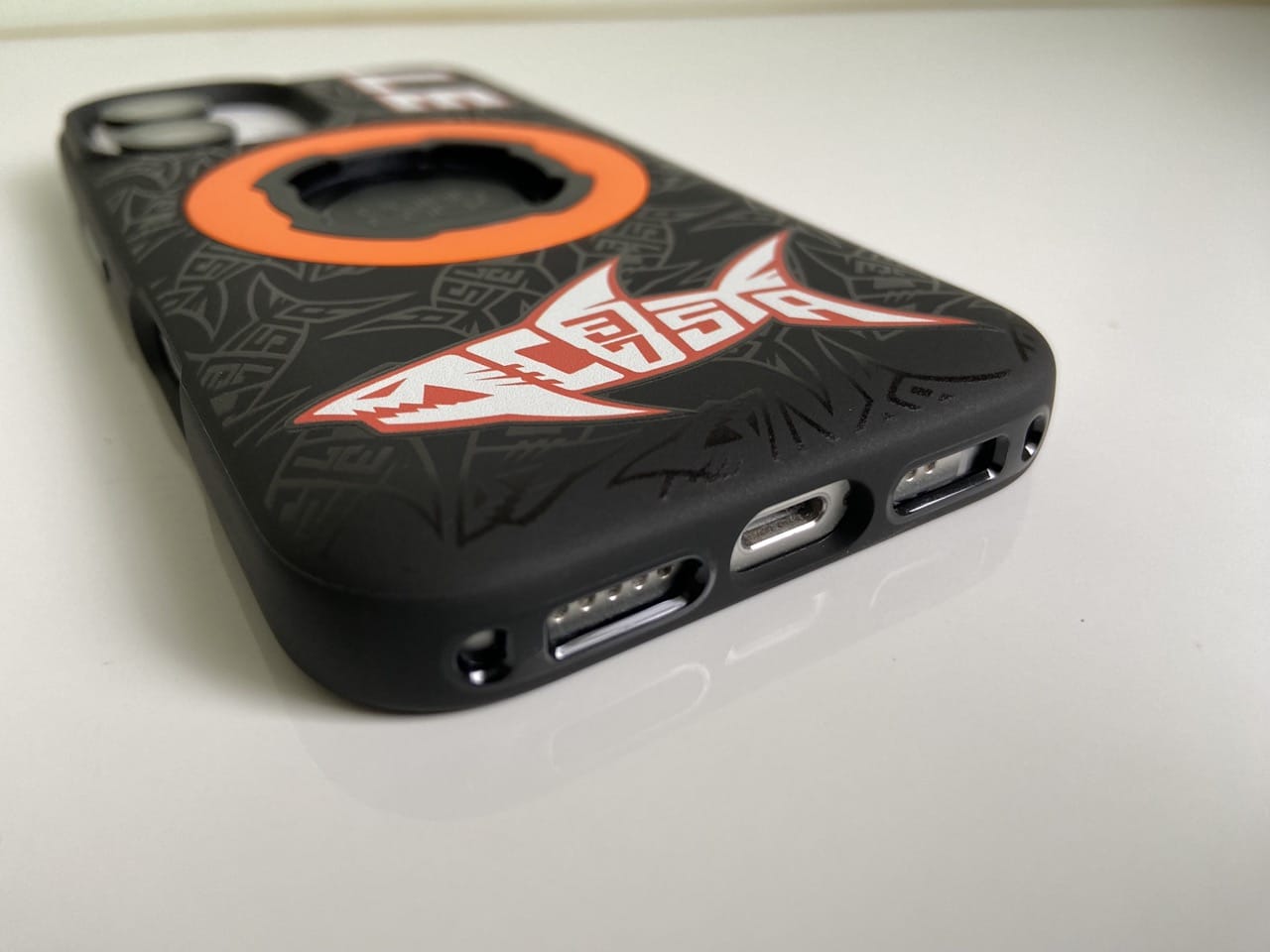 Les coques MAG Johann Zarco et Pedro Acosta reposent sur une base que l’on connaît déjà très bien. Quad Lock reprend ici sa recette éprouvée : une coque robuste, bien ajustée, qui protège efficacement le smartphone contre les chocs et les vibrations du quotidien. La prise en main est rassurante. Le revêtement accroche bien sans être désagréable. Quant aux bordures légèrement surélevées, elles protègent l’écran et le module photo lorsqu’on pose le téléphone à plat.