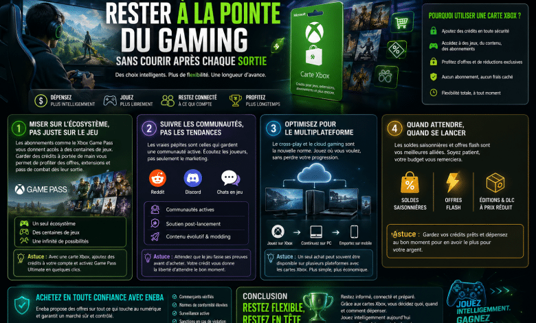 Soyez attentif aux jeux qui conservent une communauté active au fil du temps. Les jeux qui bénéficient d’un fort soutien après leur lancement offrent souvent plus de valeur. Leur potentiel de modding ou leur contenu en direct en fait de meilleurs investissements à long terme. Grâce à la flexibilité des cartes Xbox, vous pouvez planifier vos achats selon l’évolution d’un jeu. Ainsi, vous évitez de vous précipiter pour l’acheter au prix fort dès le premier jour.