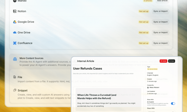 Côté client, l’agent IA de Mando s’appuie sur la base de connaissances de l’entreprise. Il répond aux questions via le centre d’aide, la newsroom et la bibliothèque de contenus. En cas de besoin, il passe la main à un humain grâce à une fonction de transfert en chat ou par alerte email si personne n’est disponible.