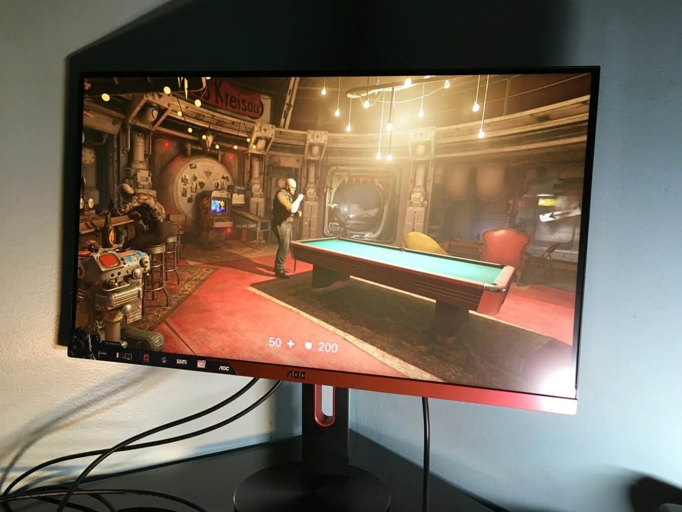 Avec une taille d’écran de 27 pouces, soit exactement 68,6 cm, le G2790PX dispose d’une dalle TN. L’écran est un vrai plaisir pour les yeux. Je dispose aussi d’un écran 24 pouces et bien que la différence ne soit pas exceptionnelle, on la remarque de suite. Mon écran de 24 pouces est presque devenu obsolète grâce/à cause de l’écran d’AOC. L’écran possède une résolution Full HD 1920 x 1080. On regrettera le fait de ne pas disposer d’un écran Ultra HD ou même d’un écran 4K alors que cette technologie tend à se démocratiser. Mais qu’importe, la qualité est belle et bien présente pour le plaisir des yeux.