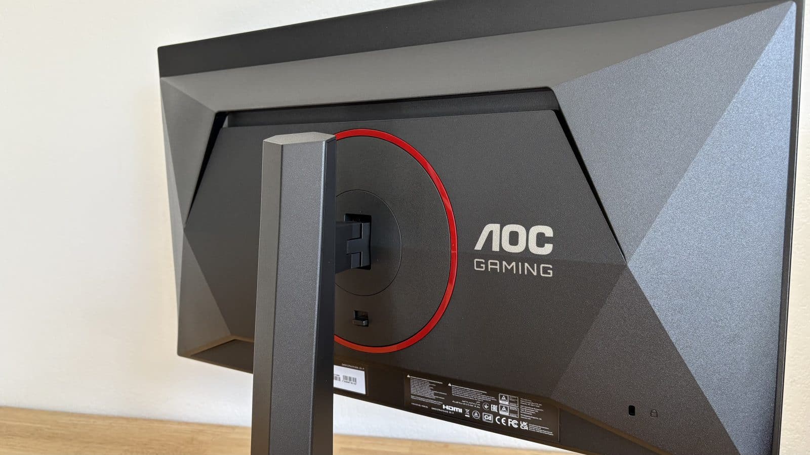 Point important, l’écran est compatible VESA 100 x 100 mm. Les quatre vis sont bien disposées en carré, espacées de 10 cm. Pour le monter sur un bras articulé ou un support mural, il suffit donc d’un bras VESA standard. Aucun adaptateur spécifique AOC n’est nécessaire, ce qui simplifie grandement l’installation et laisse une vraie liberté dans l’aménagement du bureau.