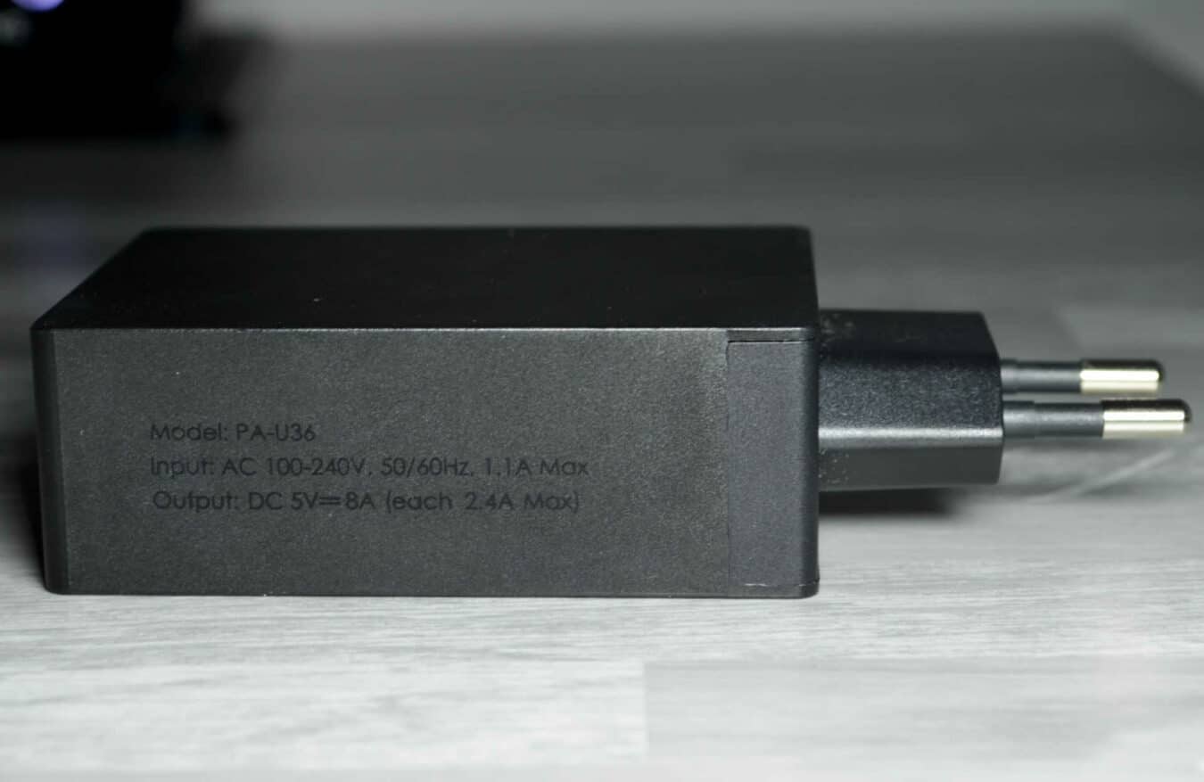 Sa taille peut être impressionnante face au chargeur de votre mobile mais pour bénéficier de 4 ports en même temps, il faut bien laisser une contrepartie. En plus, comparé à d’autres produits des concurrents, la taille n’est pas si immense et pourra facilement trouver une place. Un petit voyant vert est apposé sur le côté pour vous confirmer que l’appareil est en charge.