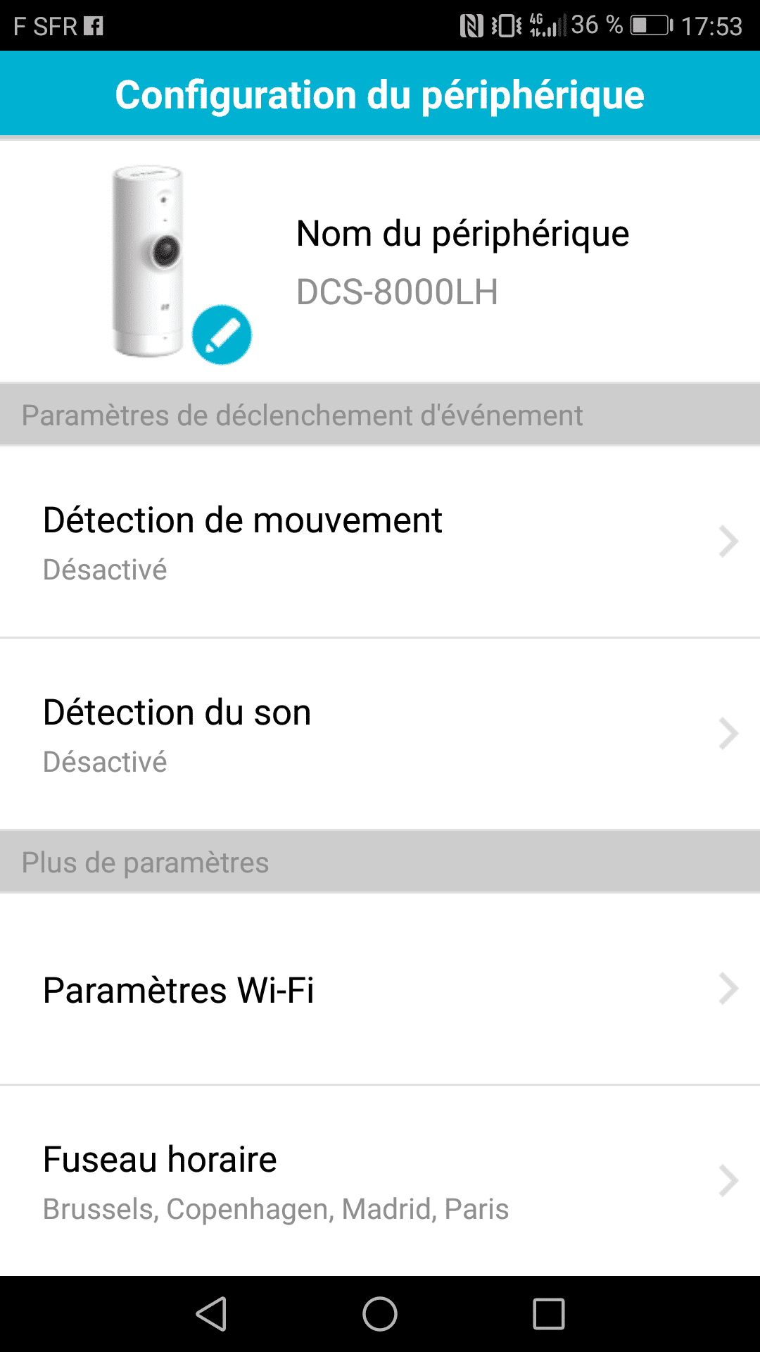 Ensuite, le menu de paramètre est très simple et complet. Activation des détecteurs, activation des notifications, gestions Wifi, enregistrement. En gros, rien de trop, juste ce qu’il faut et à la portée de tous.