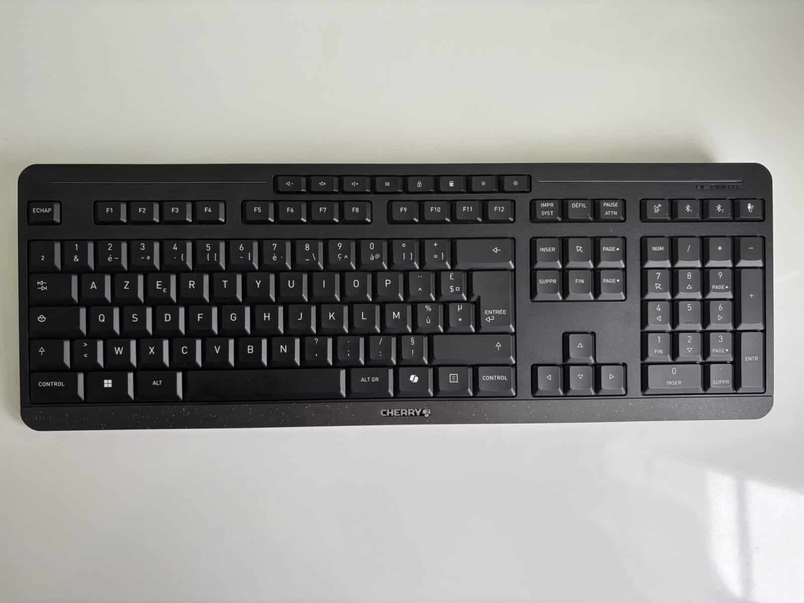 Cherry annonce une autonomie pouvant aller jusqu’à plusieurs mois selon l’usage. Ce chiffre dépendra évidemment du rétroéclairage et du nombre de connexions actives. On est clairement sur un périphérique pensé pour la tranquillité d’esprit. Ce n’est pas le genre de combo qui vous lâchera au milieu d’une journée de travail.