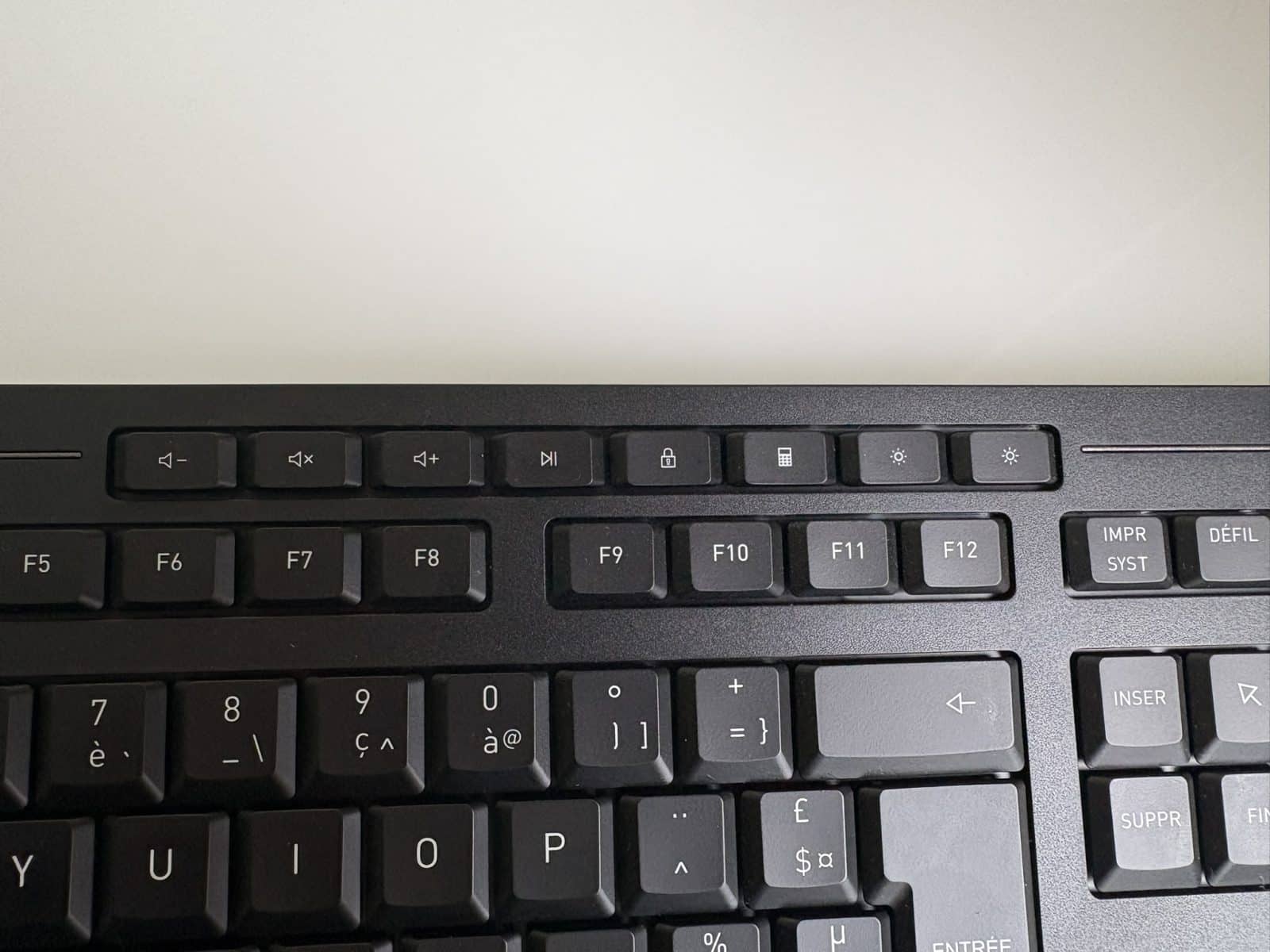 Le clavier est également rétroéclairé en blanc, avec plusieurs niveaux d’intensité. Ce rétroéclairage n’est pas là pour faire joli, mais pour améliorer la lisibilité dans toutes les conditions. Cela est notamment bénéfique en soirée ou dans un bureau faiblement éclairé. C’est un vrai plus pour le confort visuel.