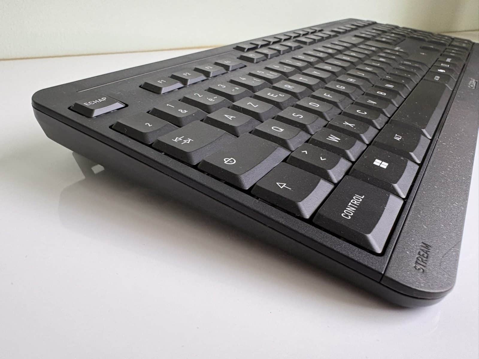 Au premier regard, le Stream Desktop Ultimate impose un style très professionnel. Le clavier affiche une silhouette fine, élégante, avec une finition sombre relevée de légers accents cuivrés. C’est discret, mais suffisamment distinctif pour ne pas donner l’impression d’un périphérique bureautique bas de gamme. Sur un bureau de télétravail, dans un open space ou même à la maison, le combo s’intègre naturellement. Il ne jure jamais avec l’environnement.