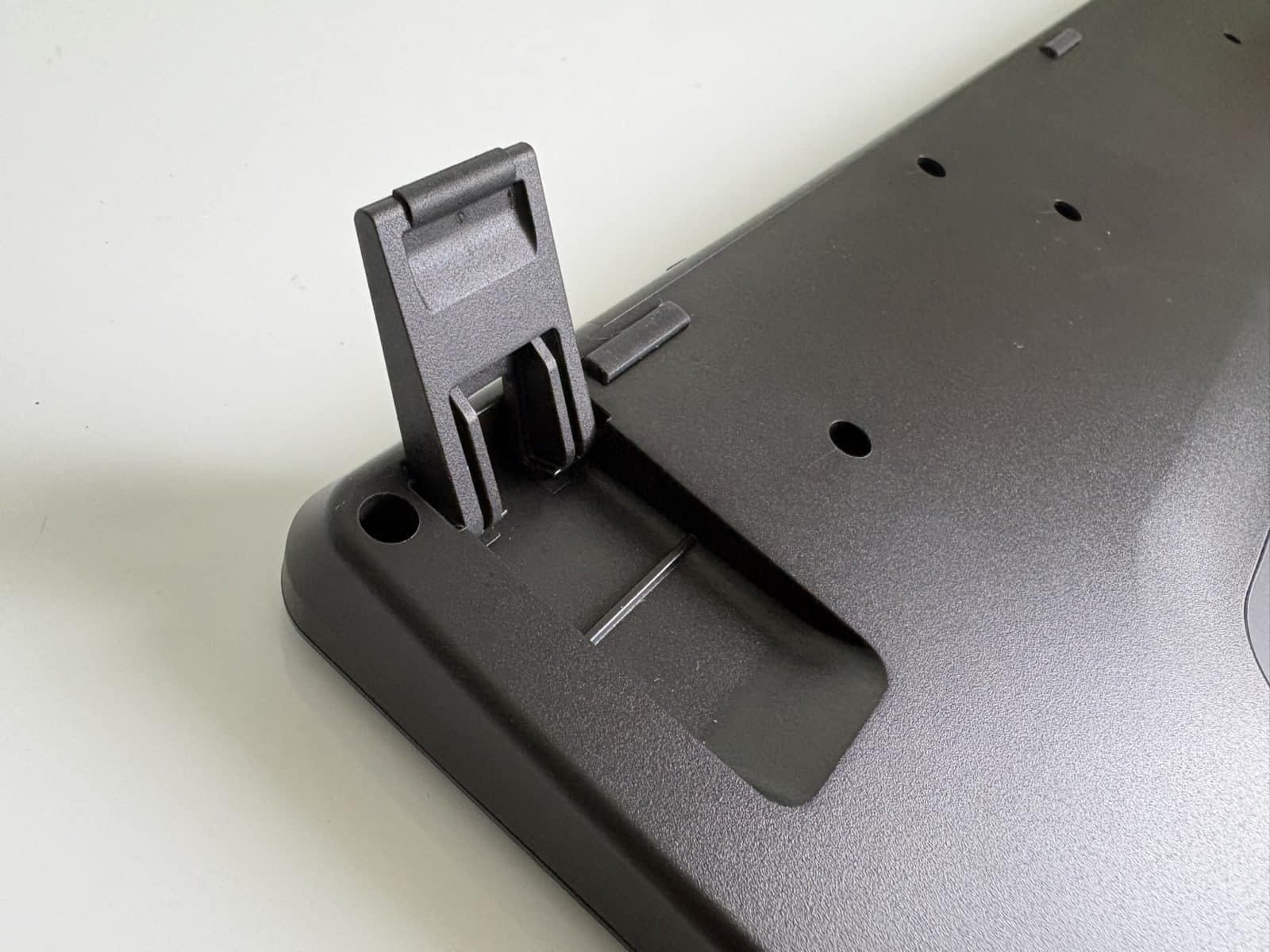 Cherry a aussi travaillé la stabilité avec une plaque métallique interne, des patins antidérapants efficaces et plusieurs niveaux d’inclinaison. Le clavier reste bien en place, même lors de longues sessions de frappe soutenue. Il s’adapte facilement aux préférences de chacun.