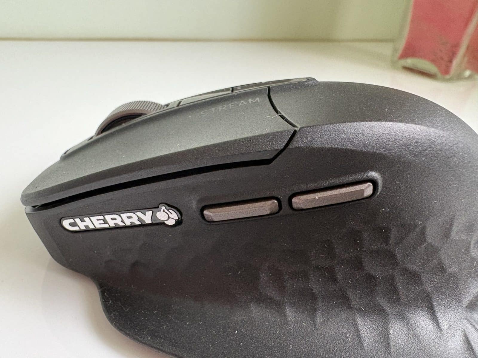 La souris reprend la même philosophie esthétique, avec un design plus travaillé qu’il n’y paraît. Son repose-pouce texturé et ses lignes légèrement sculptées trahissent immédiatement son orientation ergonomique. Cherry ne cherche pas à séduire par l’excentricité, mais par une sensation de sérieux et de durabilité. Le pari est plutôt réussi.