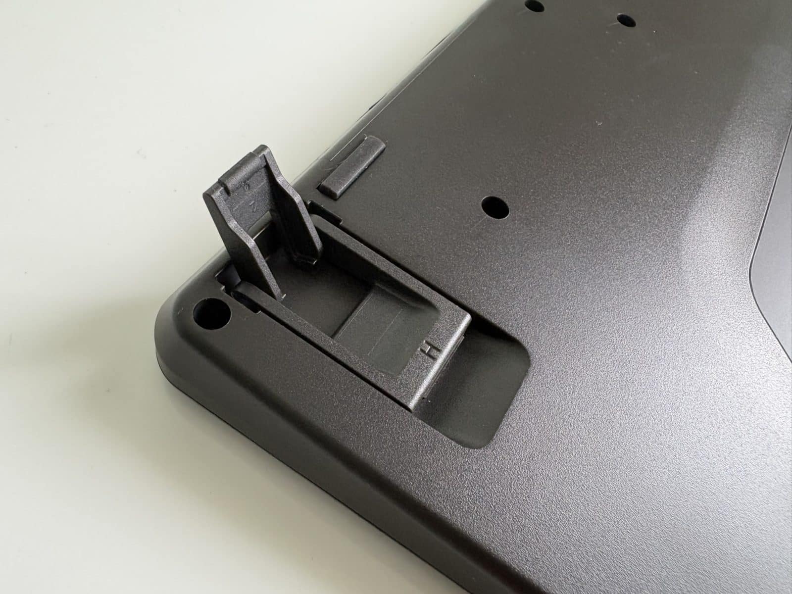 Cherry a aussi travaillé la stabilité avec une plaque métallique interne, des patins antidérapants efficaces et plusieurs niveaux d’inclinaison. Le clavier reste bien en place, même lors de longues sessions de frappe soutenue. Il s’adapte facilement aux préférences de chacun.