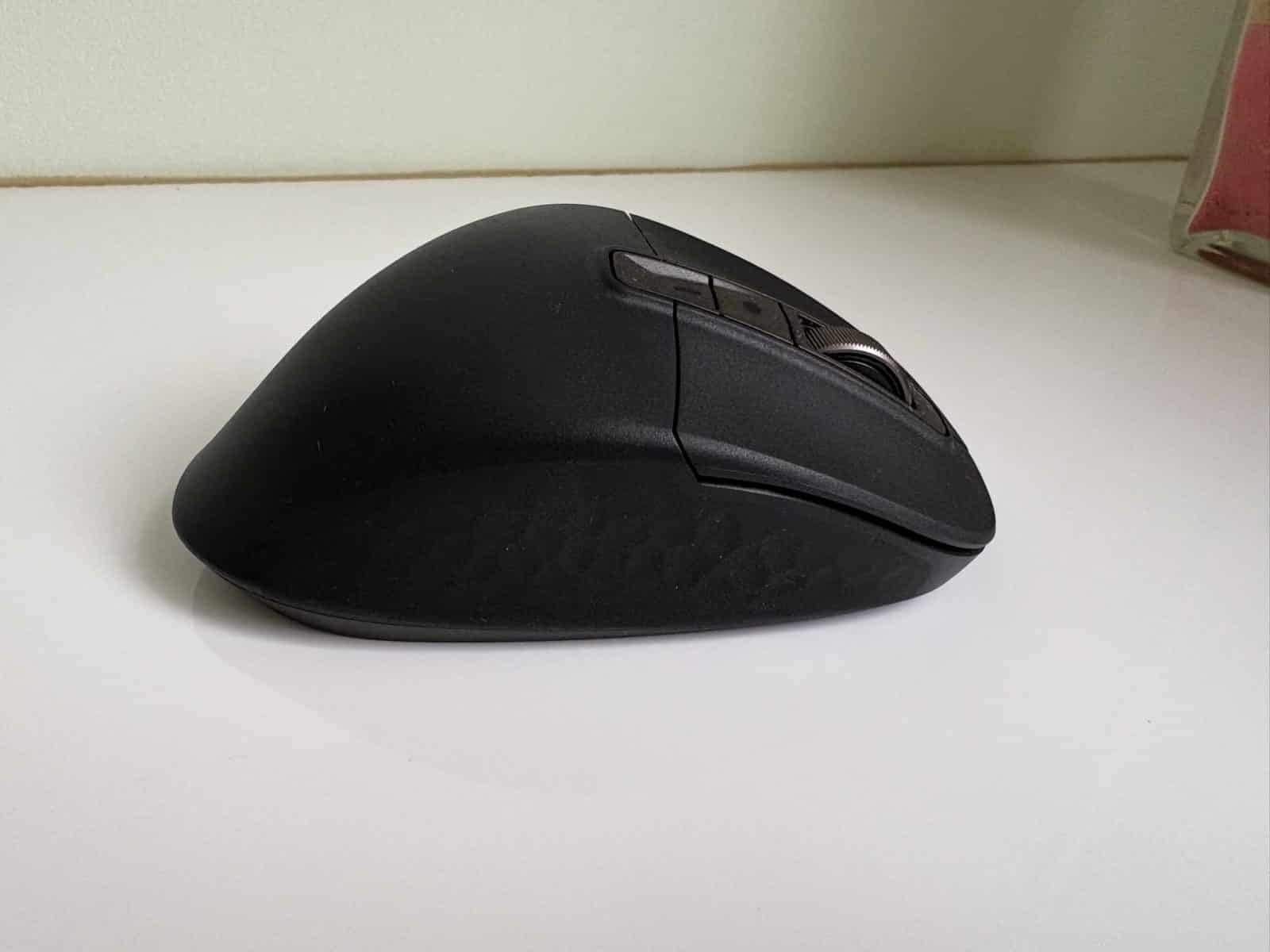 La souris fournie dans ce combo mérite clairement qu’on s’y attarde. Orientée droitiers, elle adopte une forme ergonomique bien étudiée. Elle offre un repose-pouce confortable et une prise en main naturelle. Après plusieurs heures d’utilisation, la différence avec une souris basique se fait clairement sentir. Il y a moins de tension dans la main, un positionnement plus naturel et une fatigue réduite.