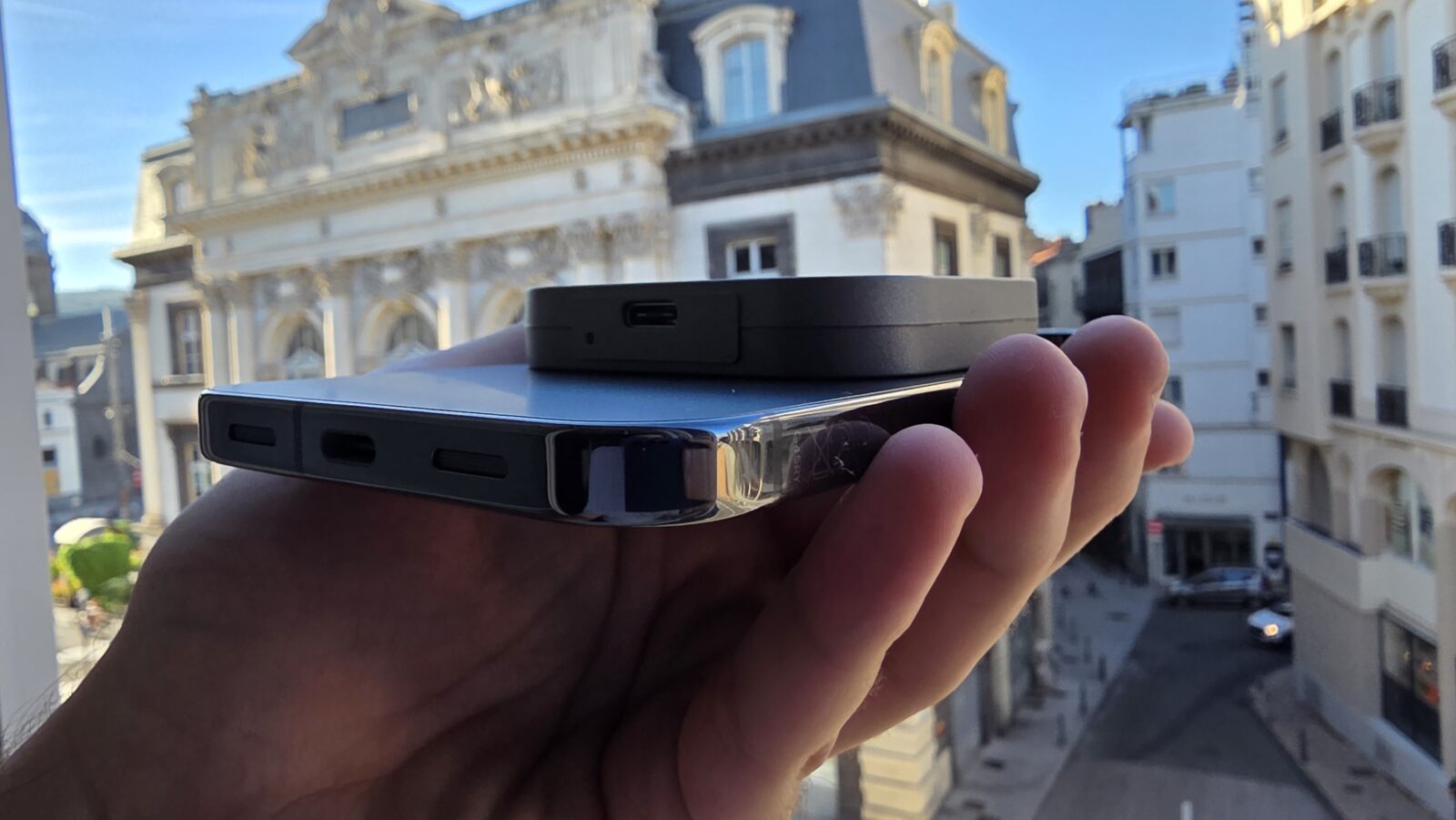 Sur ordinateur, l’expérience est tout aussi simple. Il se connecte via USB4 et profite ainsi d’une bande passante maximale. Le format compact ne gêne pas l’utilisation et il peut rester fixé discrètement à un smartphone. Sa portabilité est son plus grand atout, tout comme son caractère universel. PC, Mac, tablette ou mobile, il s’adapte à tous les environnements. Sa mise en route est immédiate et son utilisation reste fluide en toute circonstance.