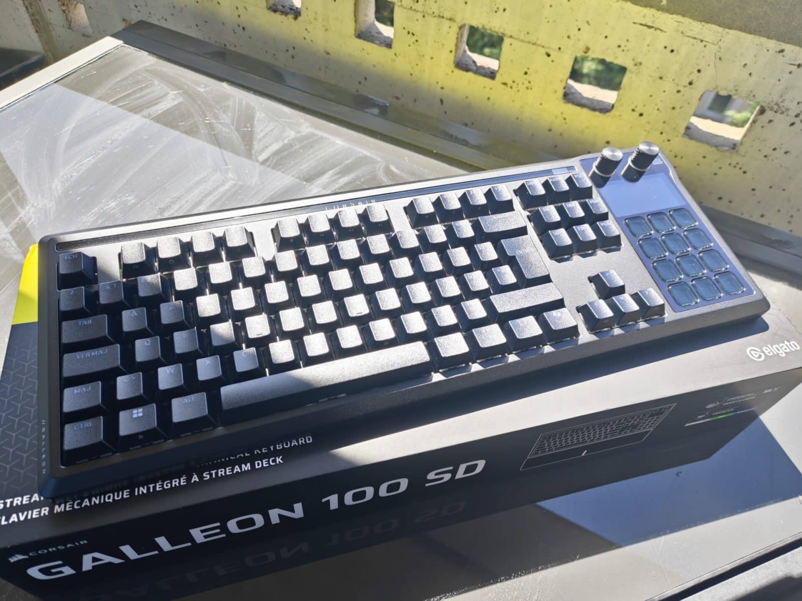 En règle générale, le milieu du gaming et celui du streaming sont assez proche. Le gaming est d’ailleurs l’un des sujets les plus populaires sur des plateformes de streaming comme Twitch. C’est en partant de ce postulat que Corsair à annoncer le Corsair Galleon 100SD. Véritable ovni dans le monde du clavier, c’est un partenariat avec la célèbre marque Elgato que l’on a ici. Ce clavier mécanique intègre tout simplement un StreamDeck en lieu et place du pavé numérique habituel. Un écran complète ce bloc innovant. Est-ce que son usage est pratique, simple ? Et surtout, est-ce que le côté gaming est toujours présent ? C’est ce que nous allons voir tout au long de ce test.