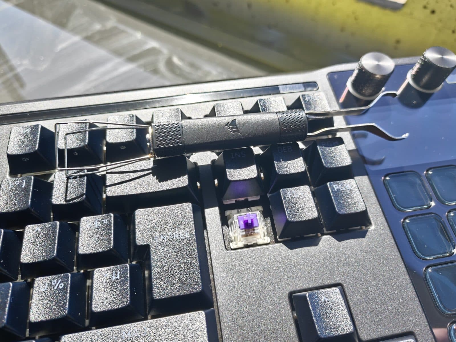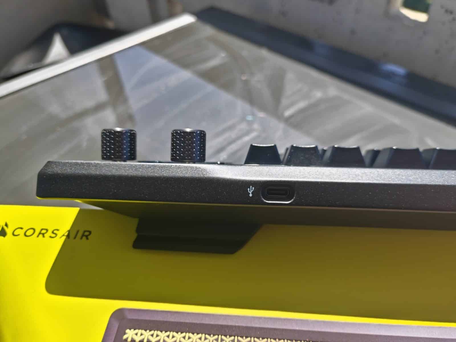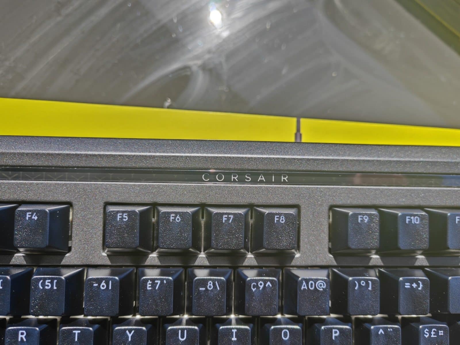 Au niveau de la frappe, Corsair a choisi des switchs maisons, les MLX Pulse. Avec une force d’activation de 45 g et une course totale de 3,6 mm, ils offrent un confort de frappe excellent avec un bruit agréable et contenu. Si vous le souhaitez, vous pourrez installer n’importe quel switchs tant qu’ils respectent les normes à 3 ou 5 pins. Haut de gamme oblige, les touches sont en moulées en PBT double shot. Ce procédé permet d’offrir une longévité à l’impression des touches, et d’éviter l’effet de brillance après un usage intensif. Personnellement, j’adore la frappe avec ces switchs. C’est doux, on a un bon feedback et le bruit est à un niveau sonore très agréable, ni trop fort ni pas assez. La frappe est simple et naturelle.