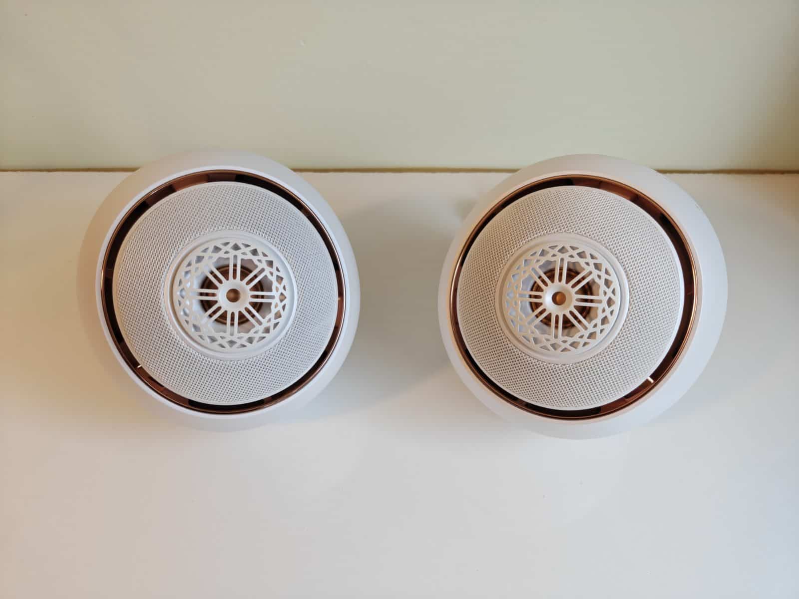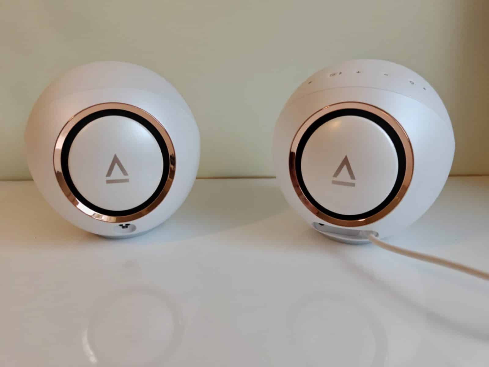 Depuis la toute première génération, Creative a défendu cette silhouette en forme de galet futuriste, orientée à 45° vers l’utilisateur. Une idée simple, mais brillante : au lieu de diffuser le son vers le torse ou le clavier, elles l’envoient directement vers les oreilles. Avec les Nova, ce design emblématique ne disparaît pas, mais gagne en maturité.