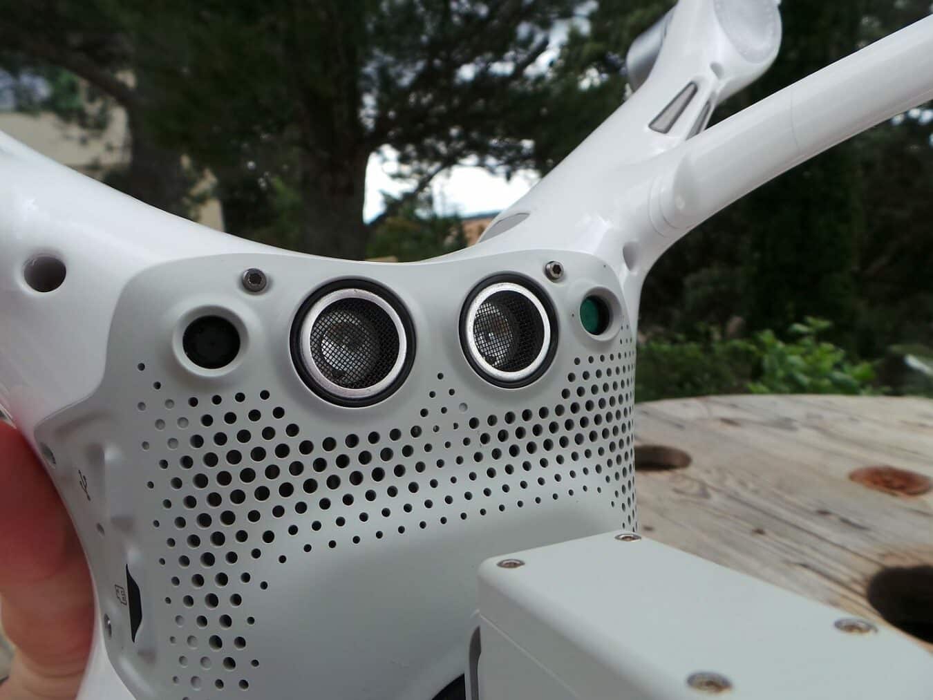 Dans un premier temps il faut noter qu’avec un prix atteignant les 1600€ sur le store DJI il n’est pas à la portée de toutes les bourses, loin de là. Mais le prix justifie beaucoup de choses, dont la facilité de prise en main. En effet, même ceux n’ayant jamais piloté de drone auront besoin de quelques heures avant de maîtriser plus ou moins bien la bête. Et DJI a tout fait pour, le Phantom 4 est bourré de capteurs et de caméras lui permettant d’effectuer un vol en toute sécurité. Deux caméras frontales et deux caméras verticales sur la partie inférieure permettent de détecter les obstacles jusqu’à 15 mètres et ainsi éviter tout ce qui pourrait se mettre en travers de la trajectoire du drone.