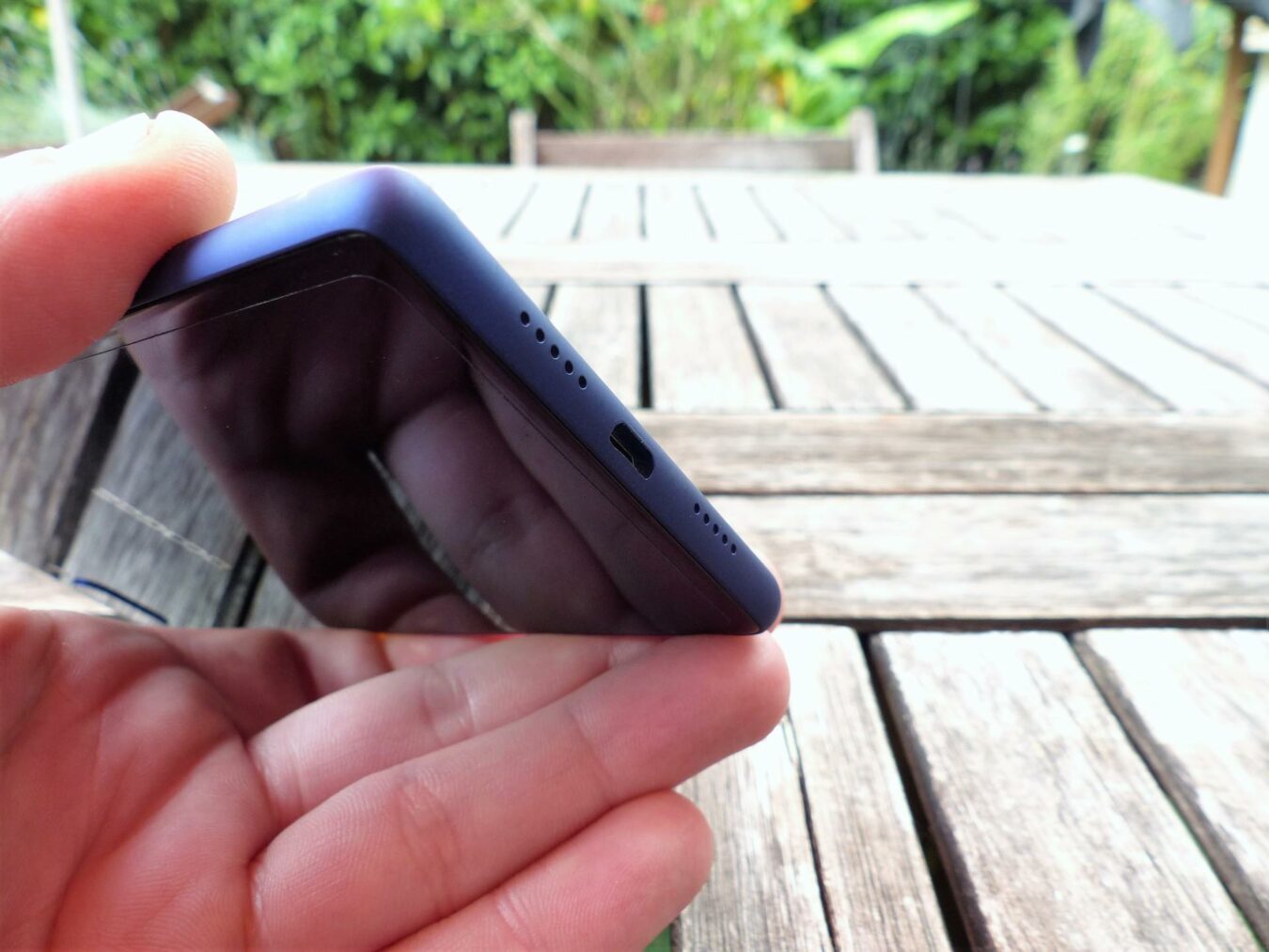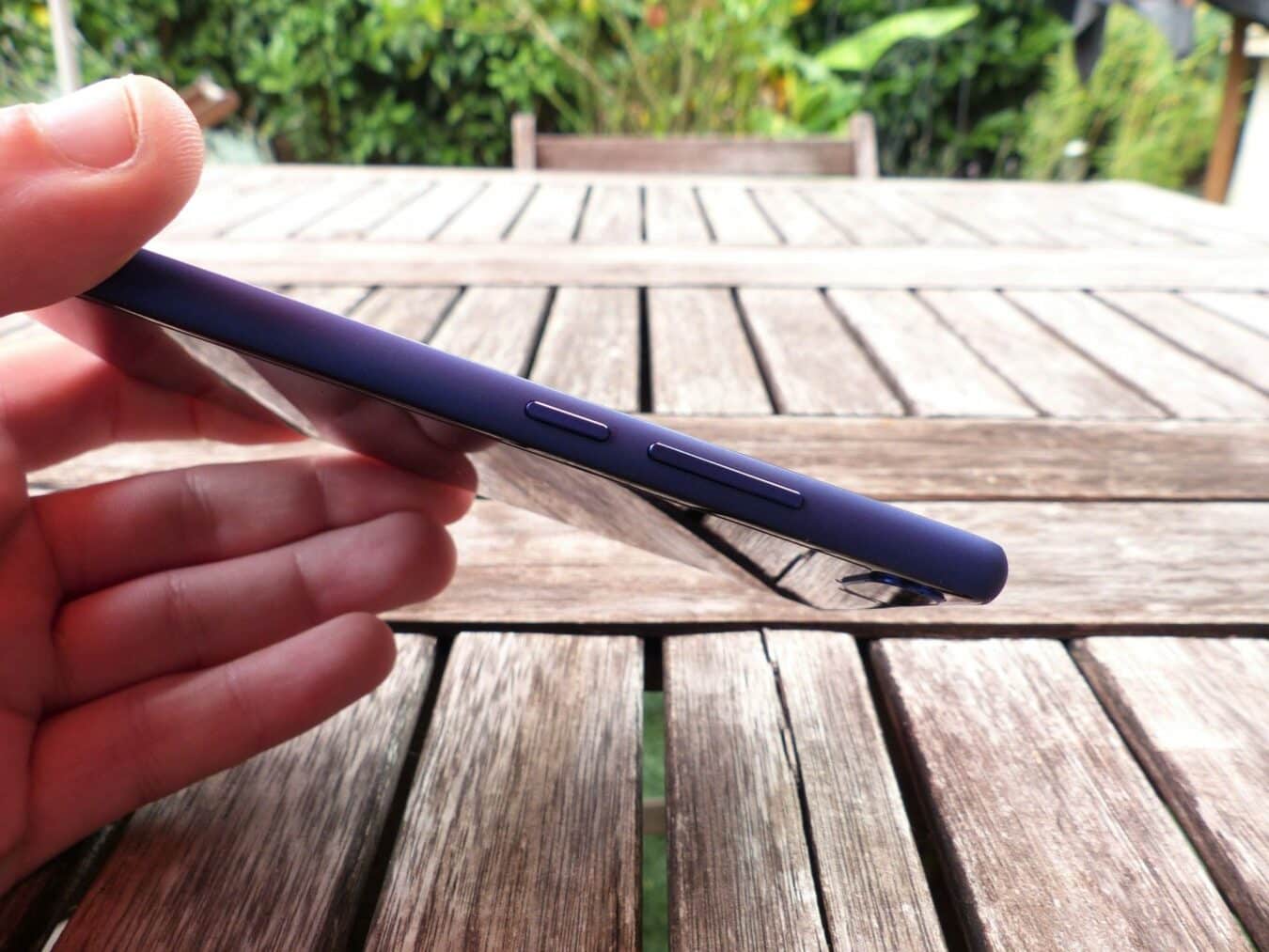 Le DOOGEE Mix surprend par sa petite taille (0,8 x 14,4 x 7,62 cm) mais cela est dû à son écran Hd Amoled Bezel-less qui lui permet de proposer une dalle de 5,5″ dans un petit format. En façade on retrouve aussi un bouton unique tactile, qui fait également lecteur d’empreintes, et la caméra avant juste en bas à droite. Aucuns soucis pour les selfies, il suffit de retourner le smartphone. Sur la tranche, il y a le bouton On/Off et le volume, de l’autre coté, il y a le tiroir double sim ou sim + microSD. Aussi, il ne pèse que 193 gr malgré son pourtour en métal et son dos en verre.