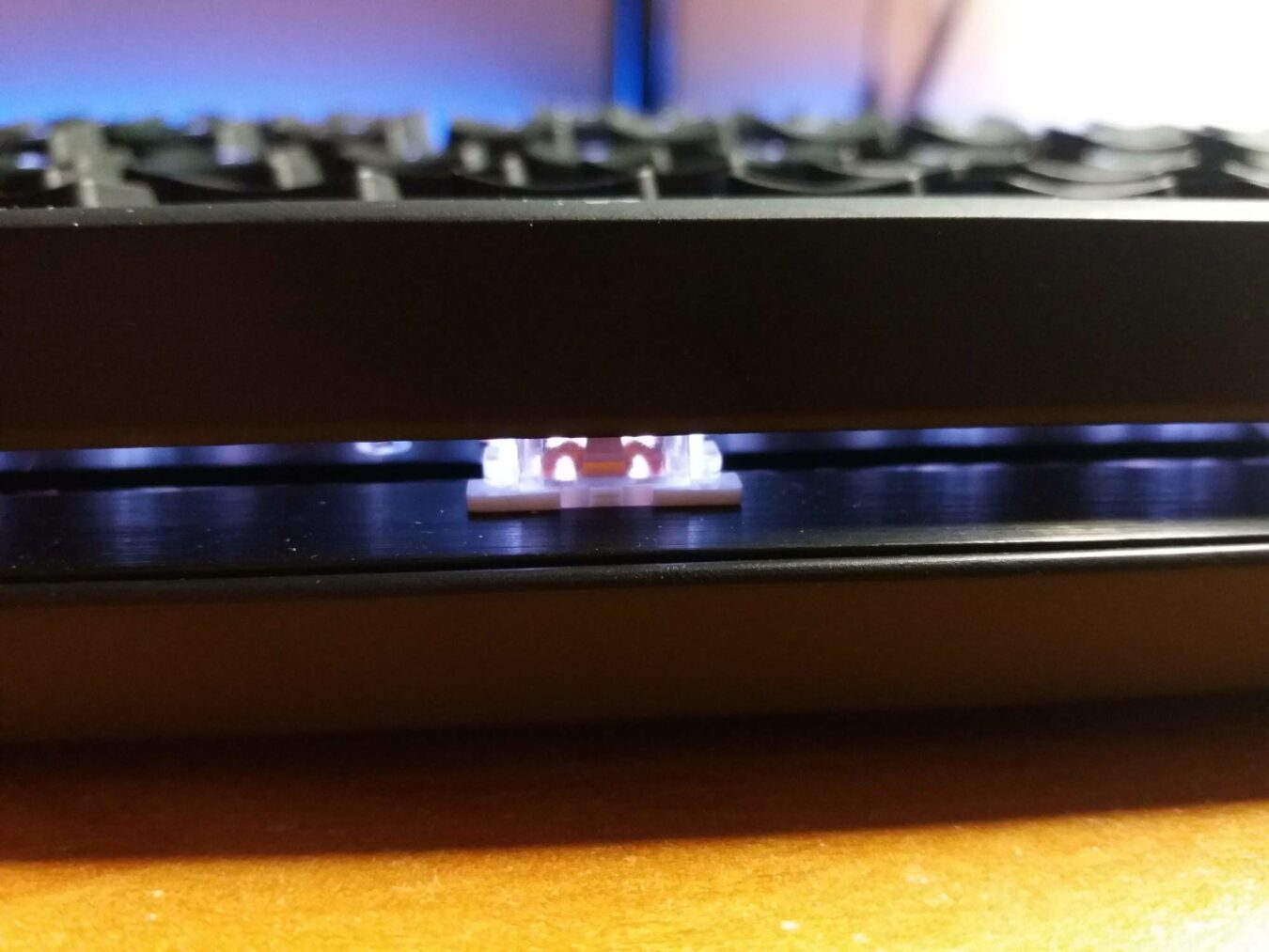 La première chose sautant aux yeux lors du déballage est la qualité de finition du clavier. Le dessous des touches est constitué d’aluminium brossé noir amenant un côté premium, mais également une bonne solidité. Le dessous du clavier est constitué d’un plastique noir de construction solide auquel est associé 4 patins permettant d’éviter le glissement sur la surface sur laquelle celui-ci est disposé.