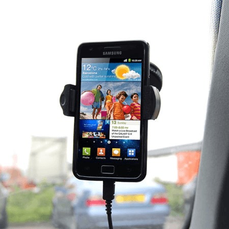 Et puisque qu’on parle de voiture, autant utiliser le GPS du Galaxy S2, ou l’écouter lire les messages, ou répondre au téléphone avec le haut parleur. Il faut donc un support de voiture pour le mettre. Et ce support vous permettra de le positionner comme vous voulez et ou vous voulez et autant de fois que vous voulez grâce à sa ventouse !